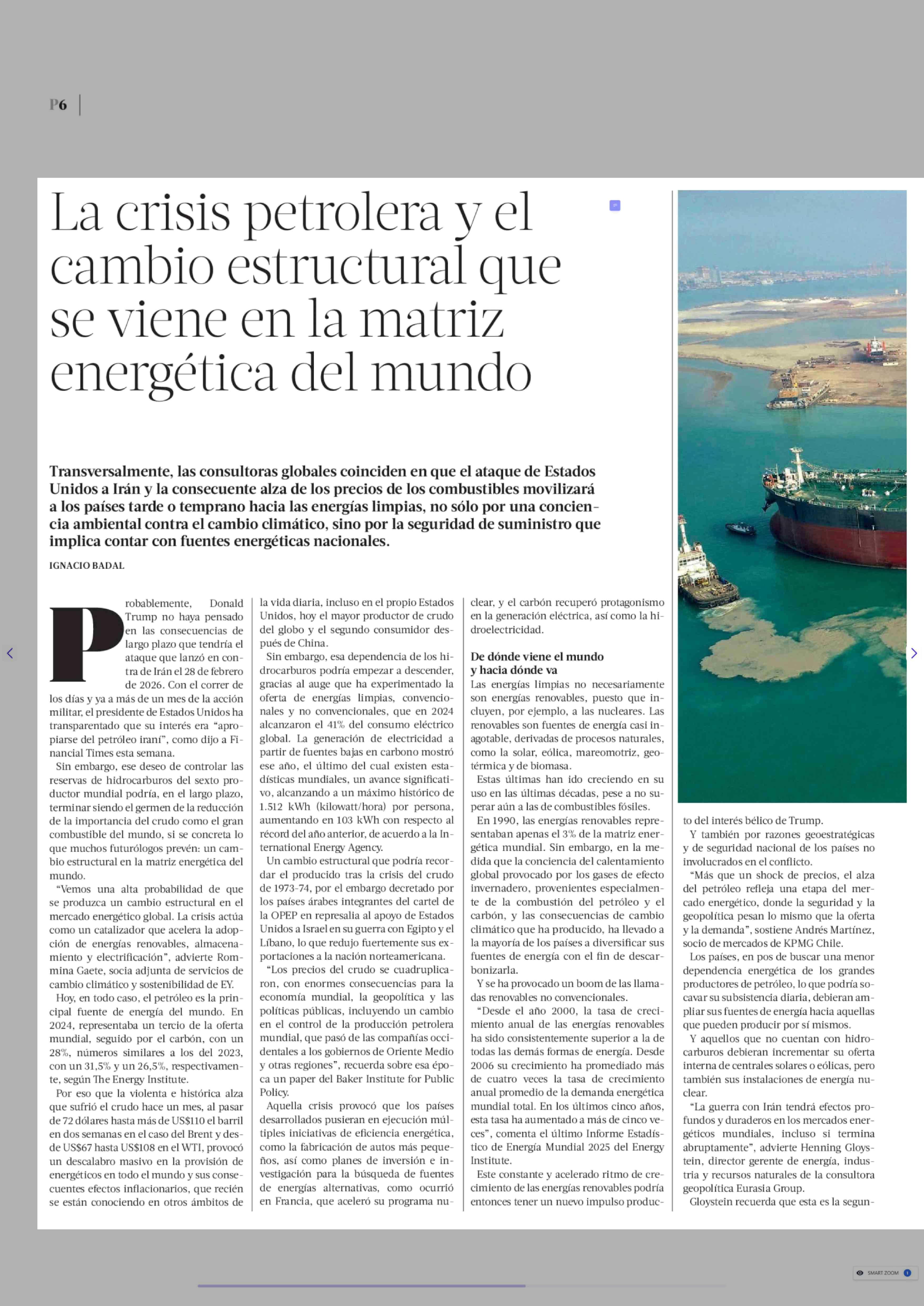 Título: La crisis petrolera y el cambio estructural que se viene en la matriz energética del mundo