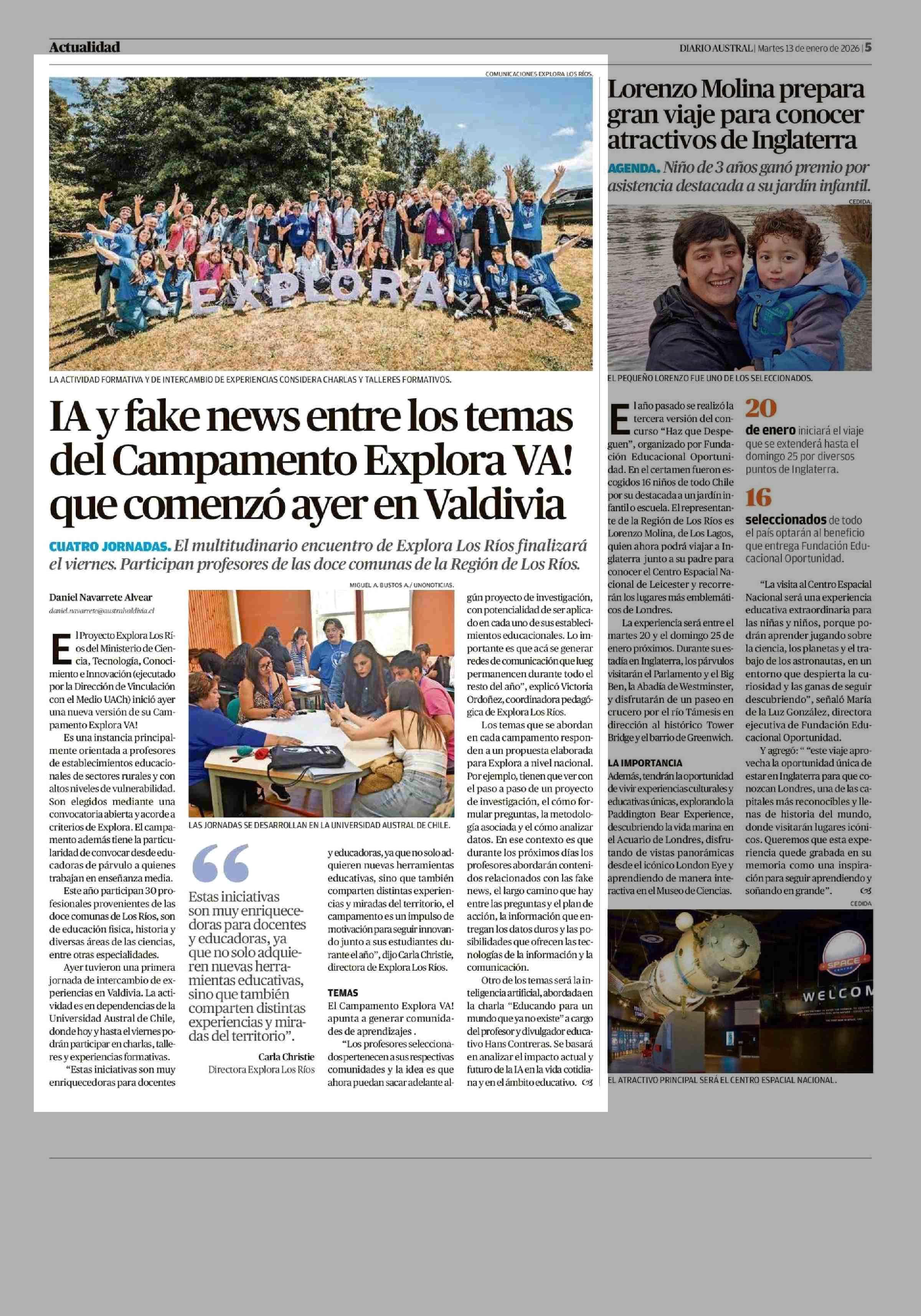 IA y fake news entre los temas del Campamento Explora VA! que comenzó ayer en Valdivia 13-01-2026 Diario Austral Región de Los Ríos |