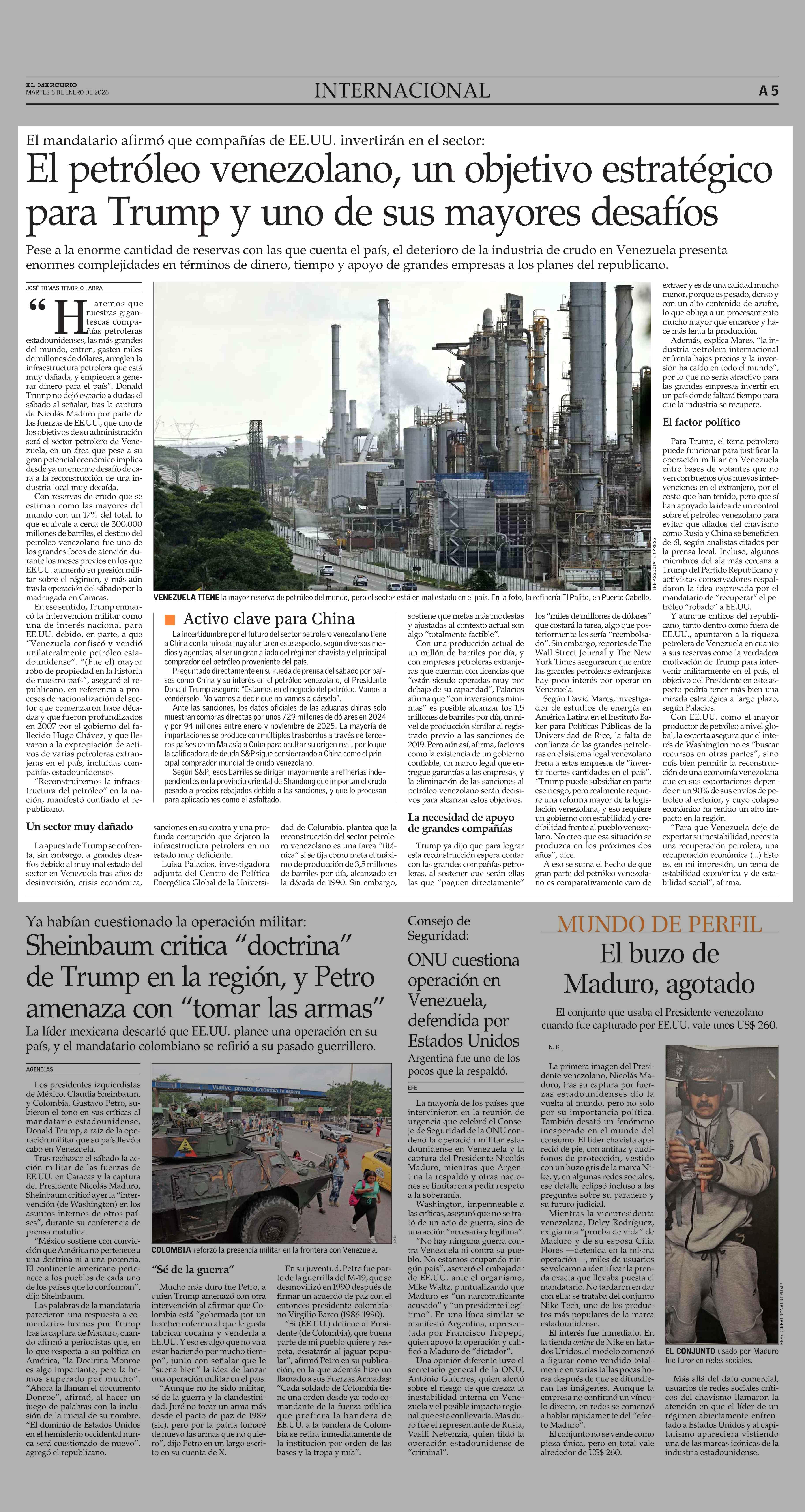 El petróleo venezolano, un objetivo estratégico para Trump y uno de sus mayores desafíos 06-01-2026 El Mercurio |