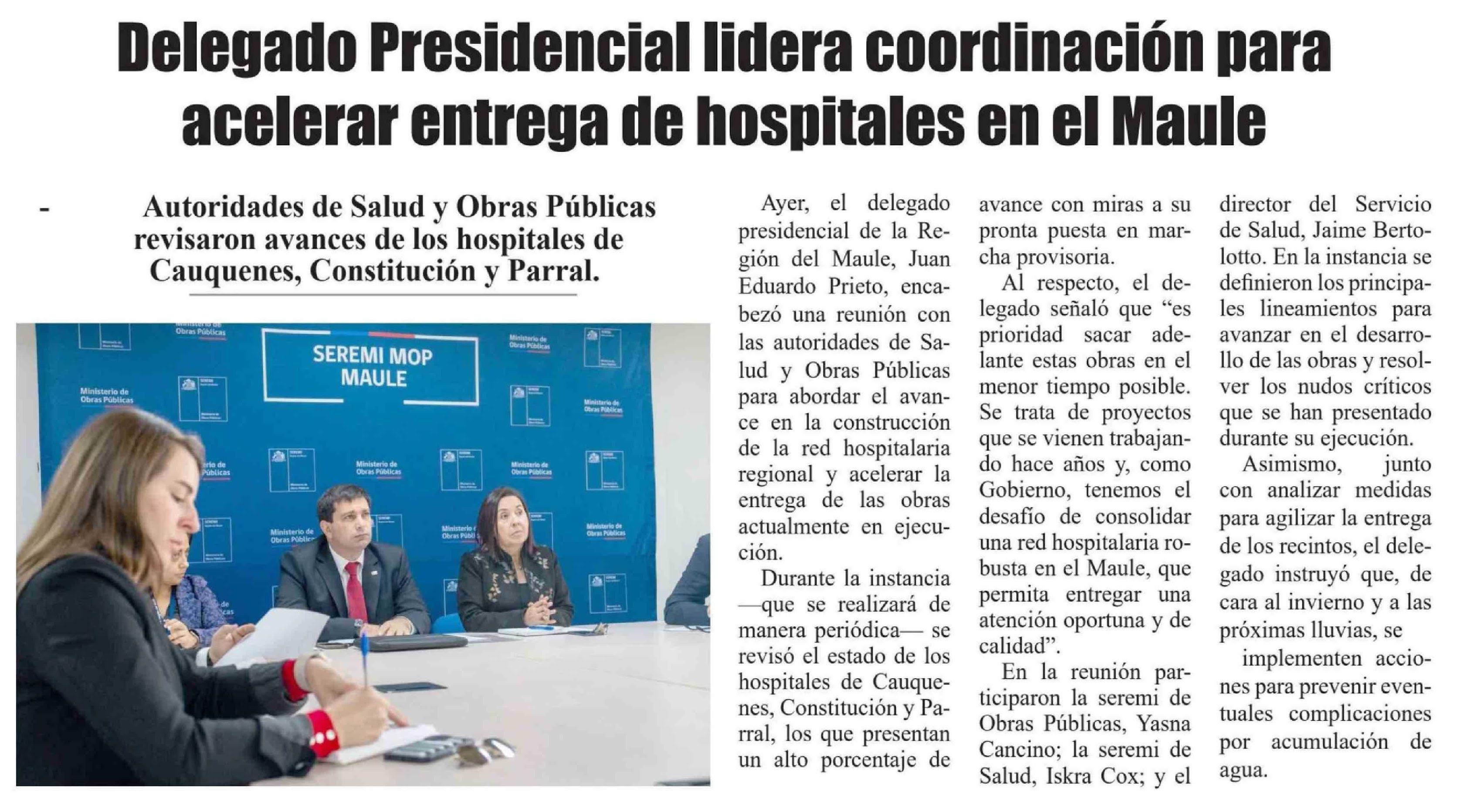 Título: Delegado Presidencial lidera coordinación para acelerar entrega de hospitales en el Maule