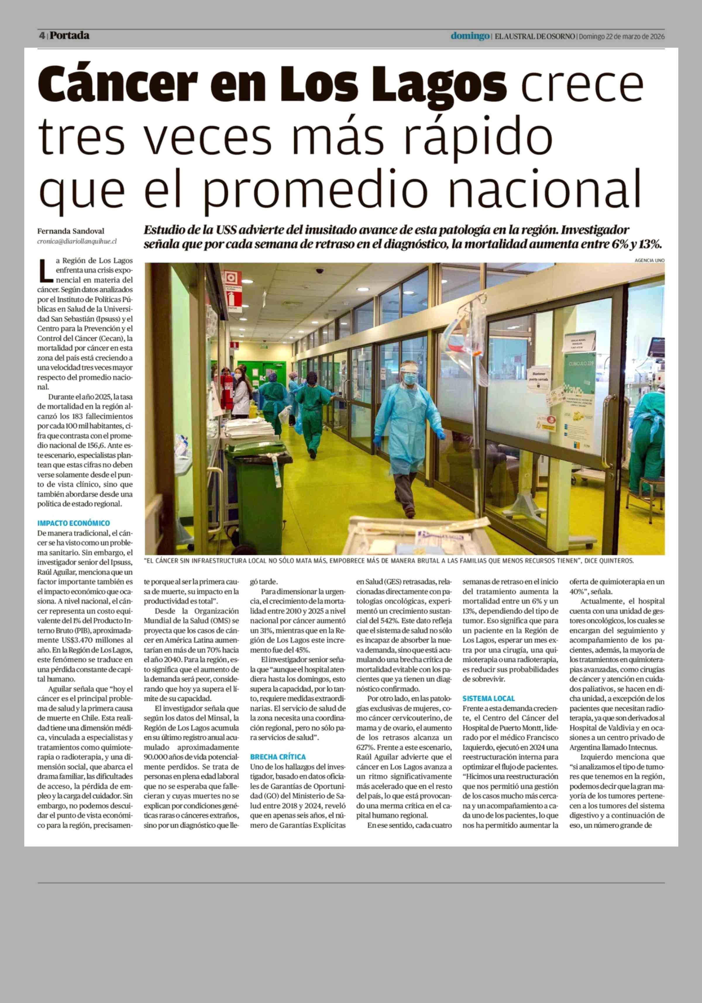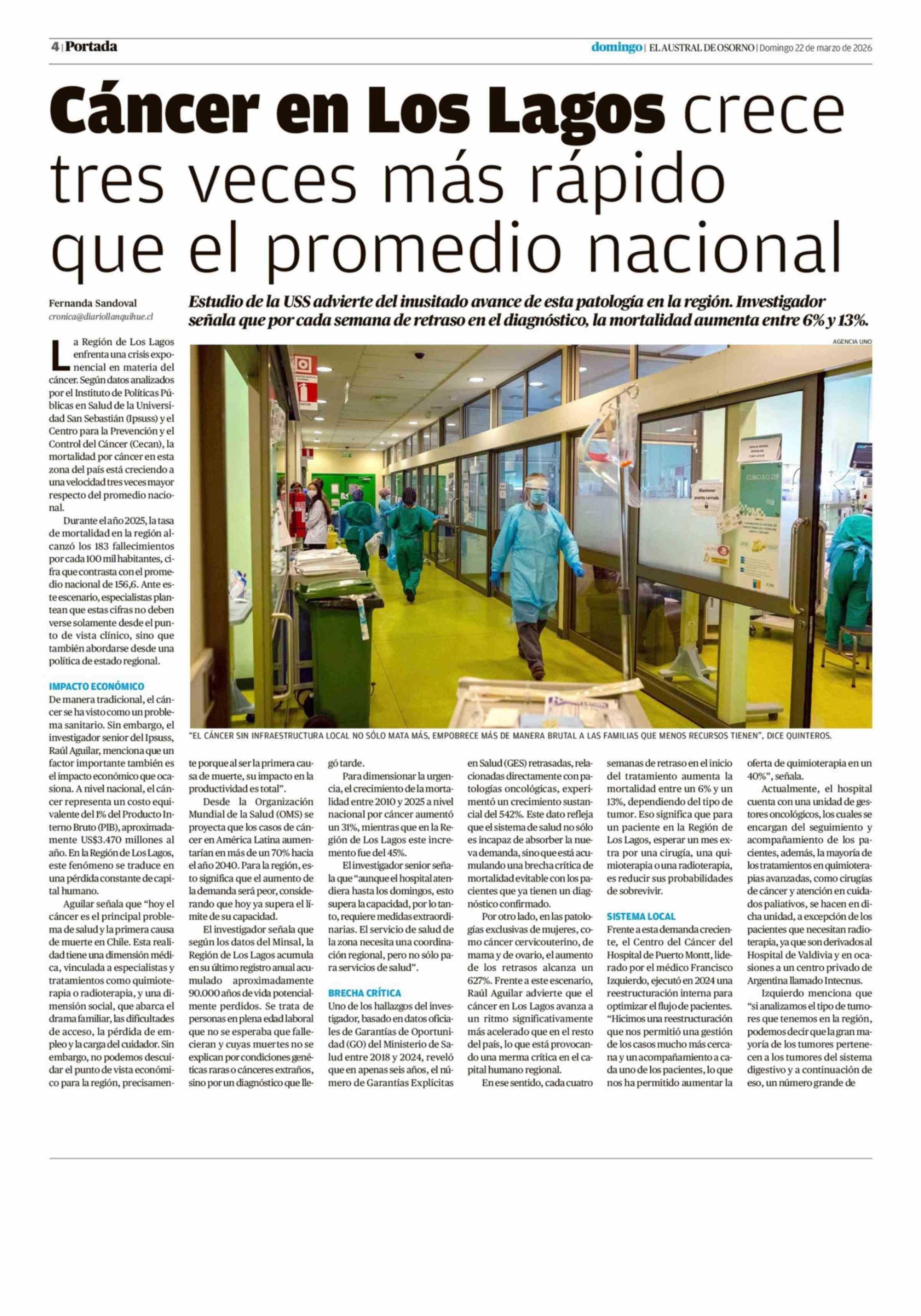 Título: Cáncer en Los Lagos crece tres veces más rápido que el promedio nacional