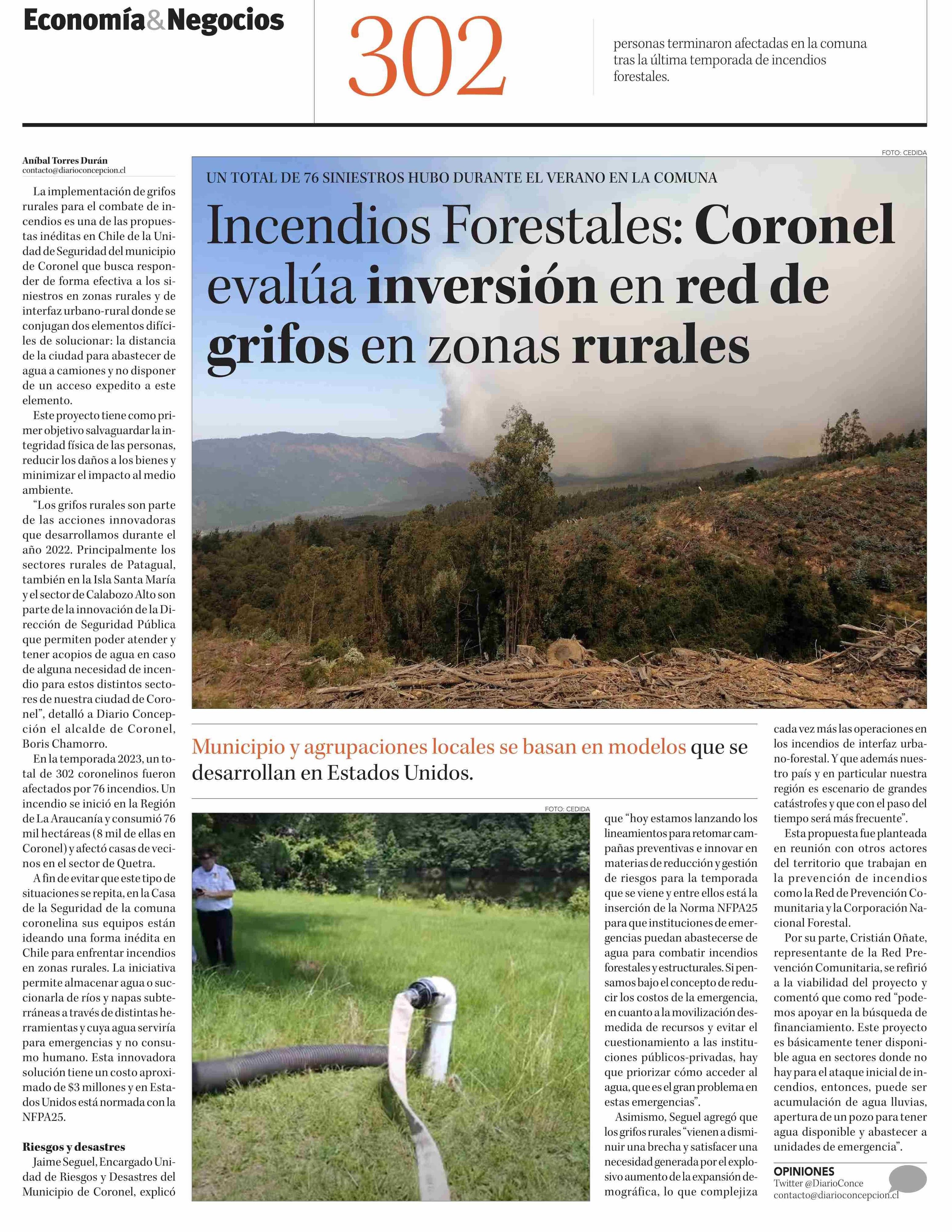 Incendios Forestales: Coronel evalúa inversión en red de grifos en zonas rurales 20-06-2023 Diario Concepción |