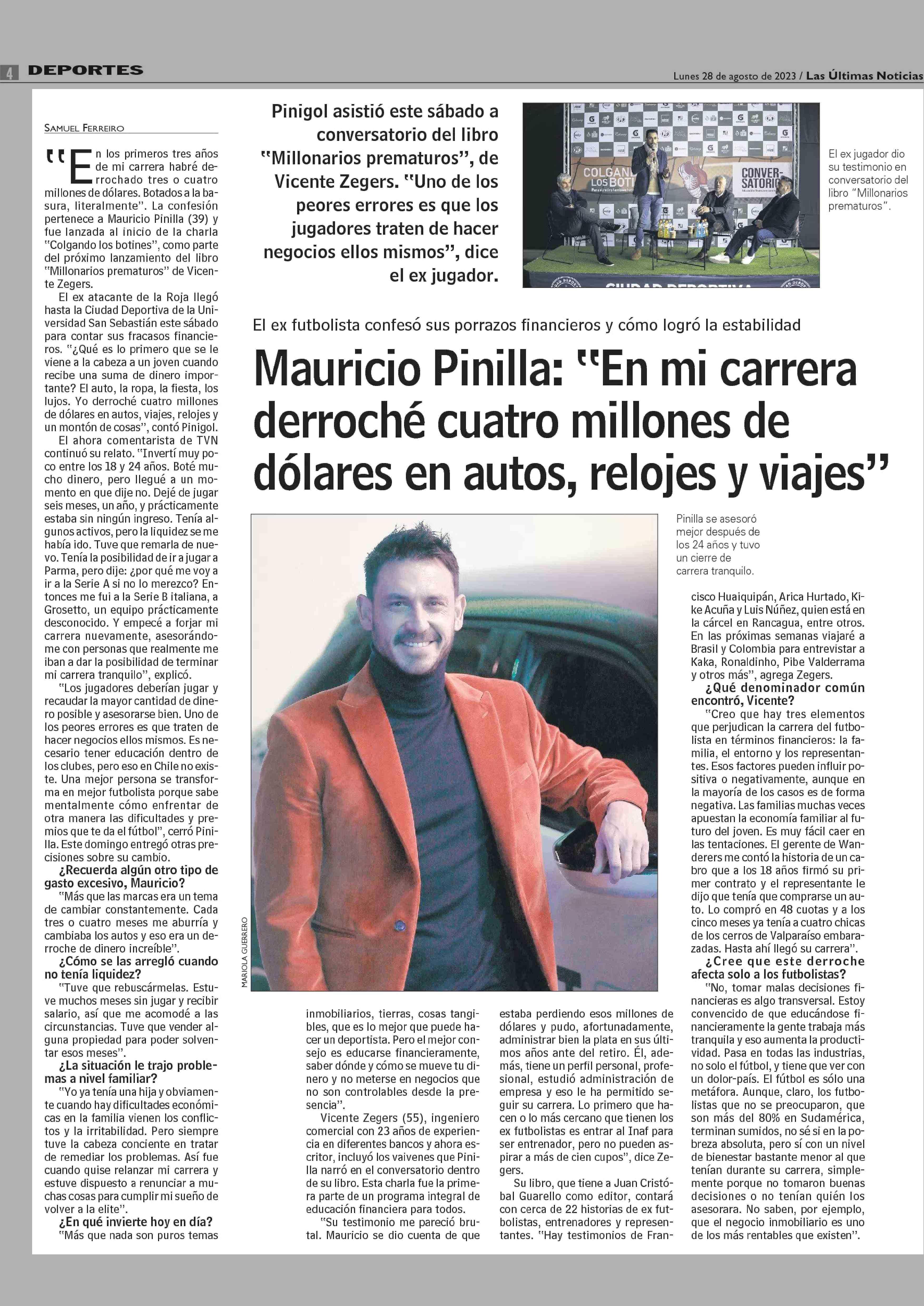 Mauricio Pinilla: “En mi carrera derroché cuatro millones de dólares en autos, relojes y viajes” 28-08-2023 Las Últimas Noticias |