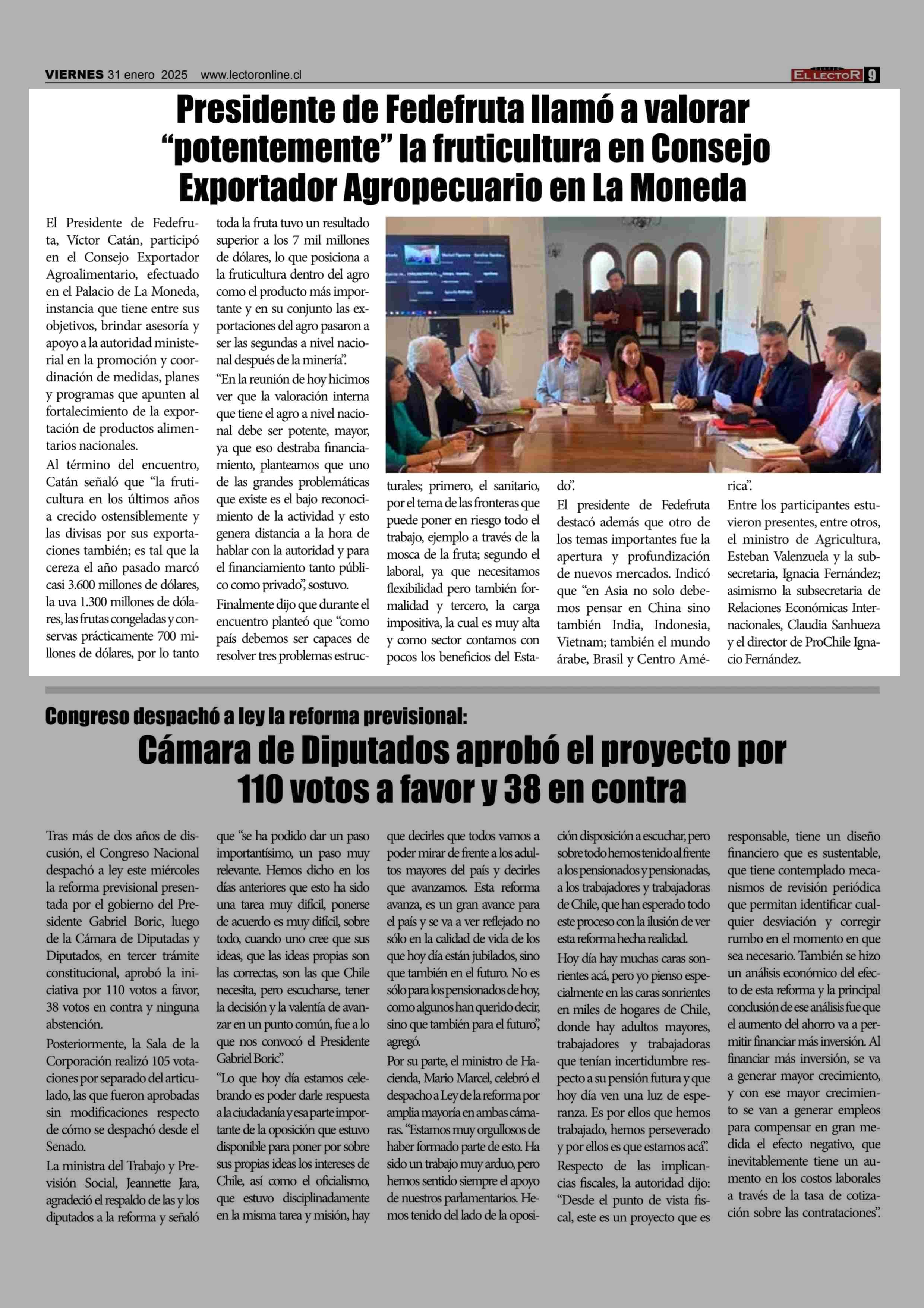 Presidente de Fedefruta llamó a valorar “potentemente” la fruticultura en Consejo Exportador Agropecuario en La Moneda 31-01-2025 El Lector |