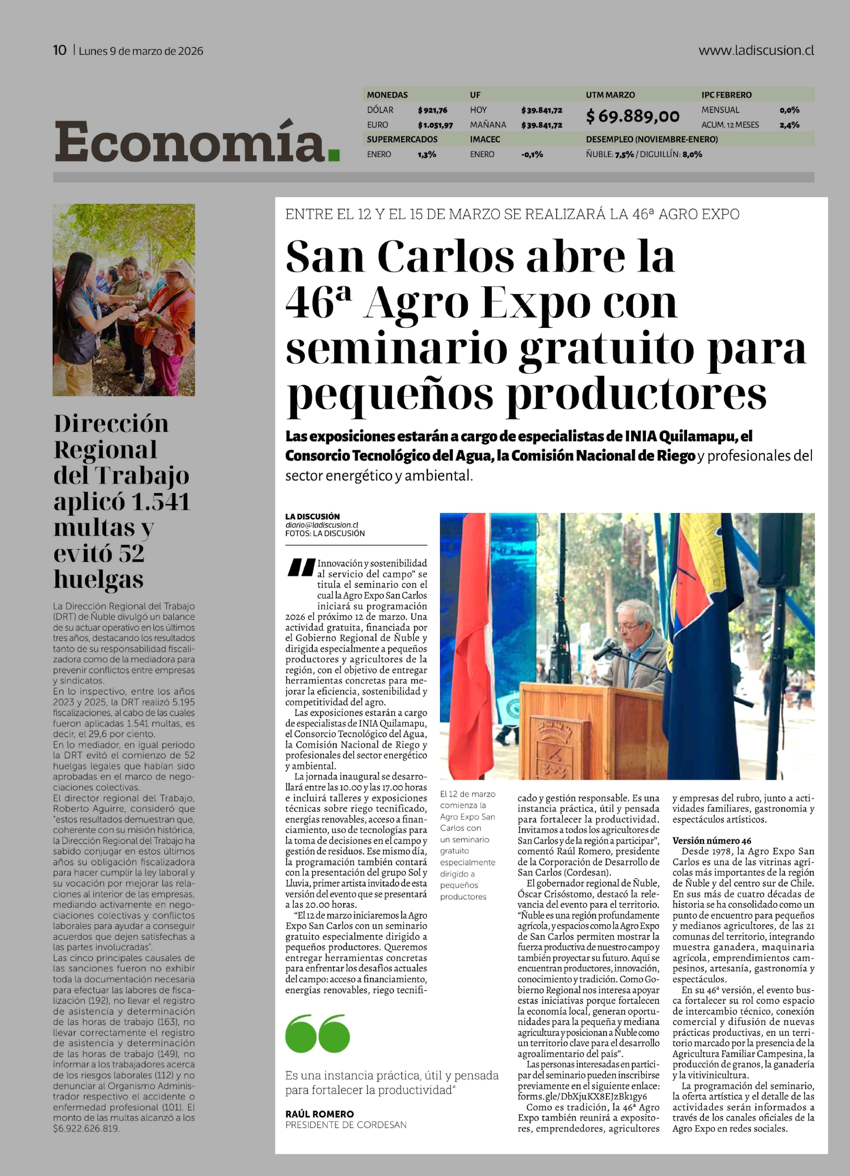| Fecha: | 09-03-2026 | Sector: | Noticia general | Región: | Región del Ñuble |