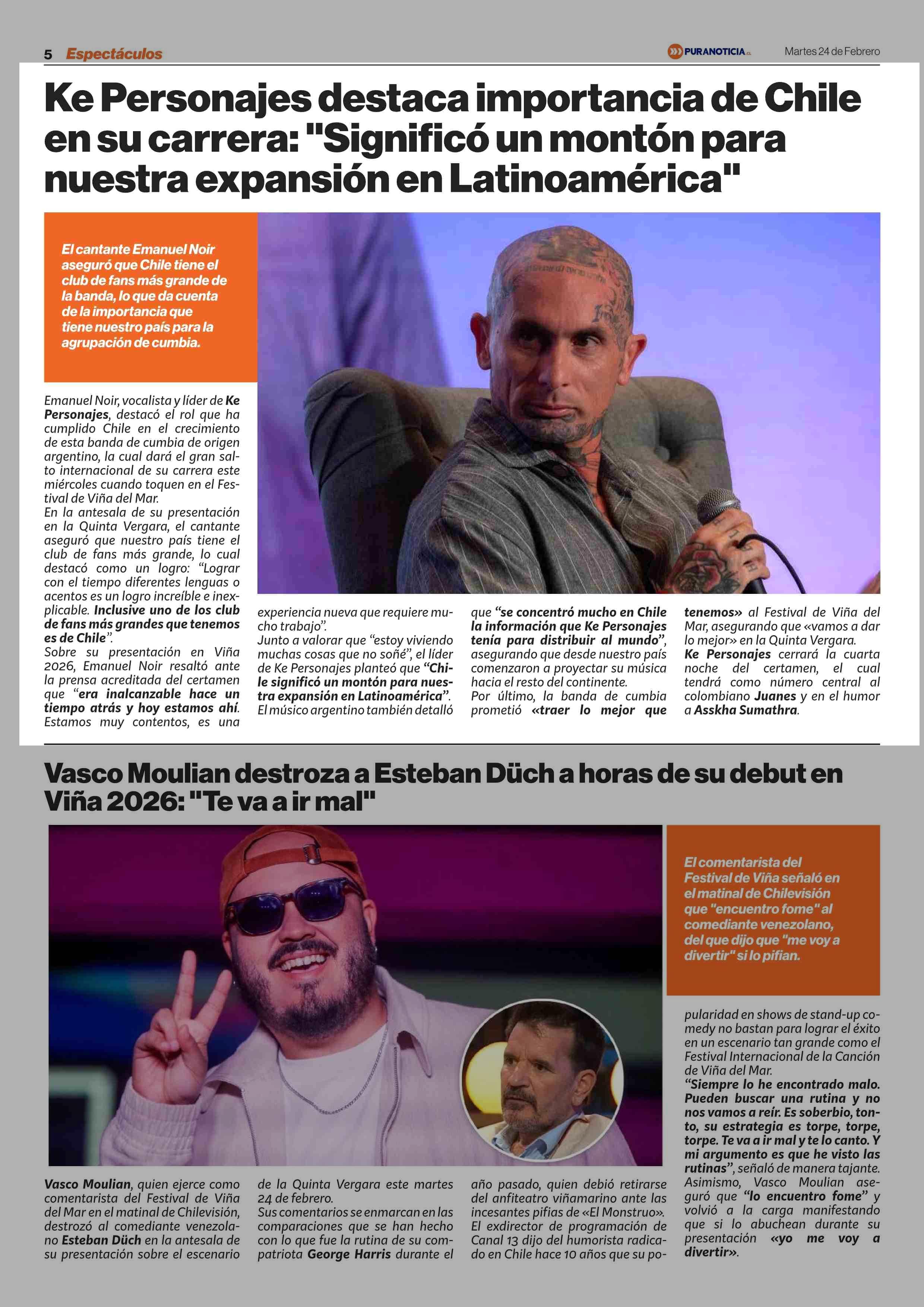 Ke Personajes destaca importancia de Chile en su carrera: “Significó un montón para nuestra expansión en Latinoamérica” 24-02-2026 Puranoticia.cl |