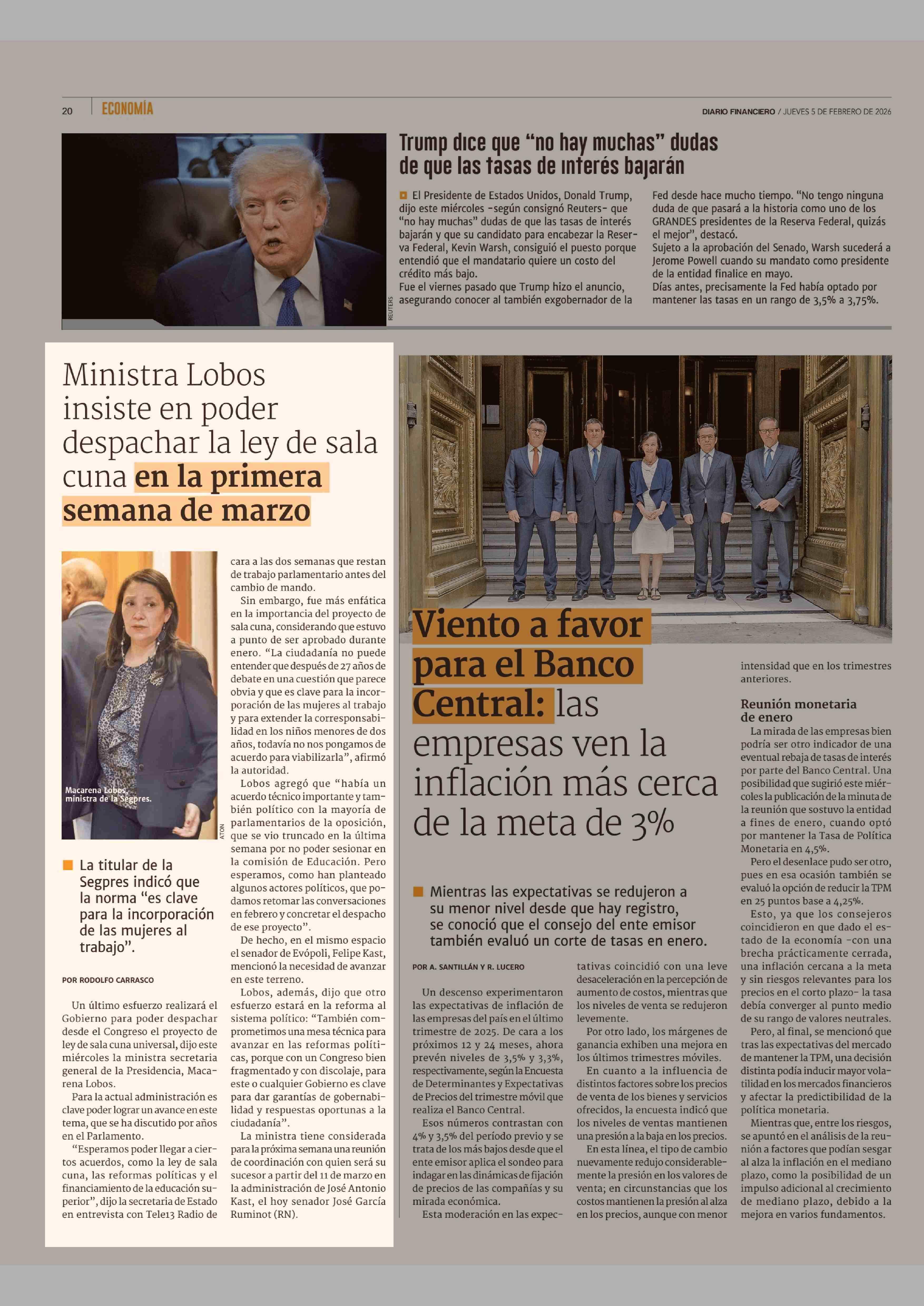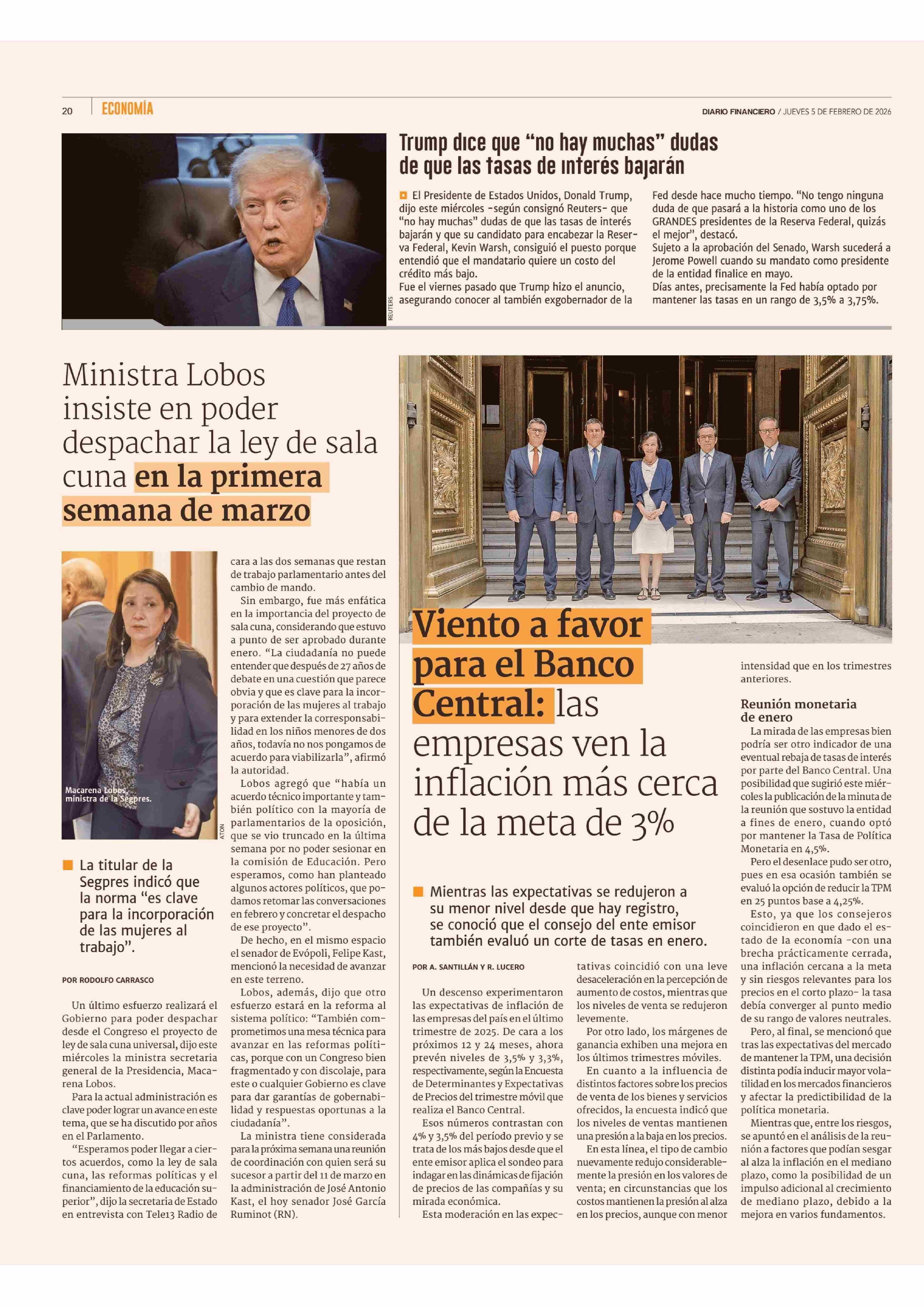 Ministra Lobos insiste en poder despachar la ley de sala cuna en la primera semana de marzo 05-02-2026 Diario Financiero |
