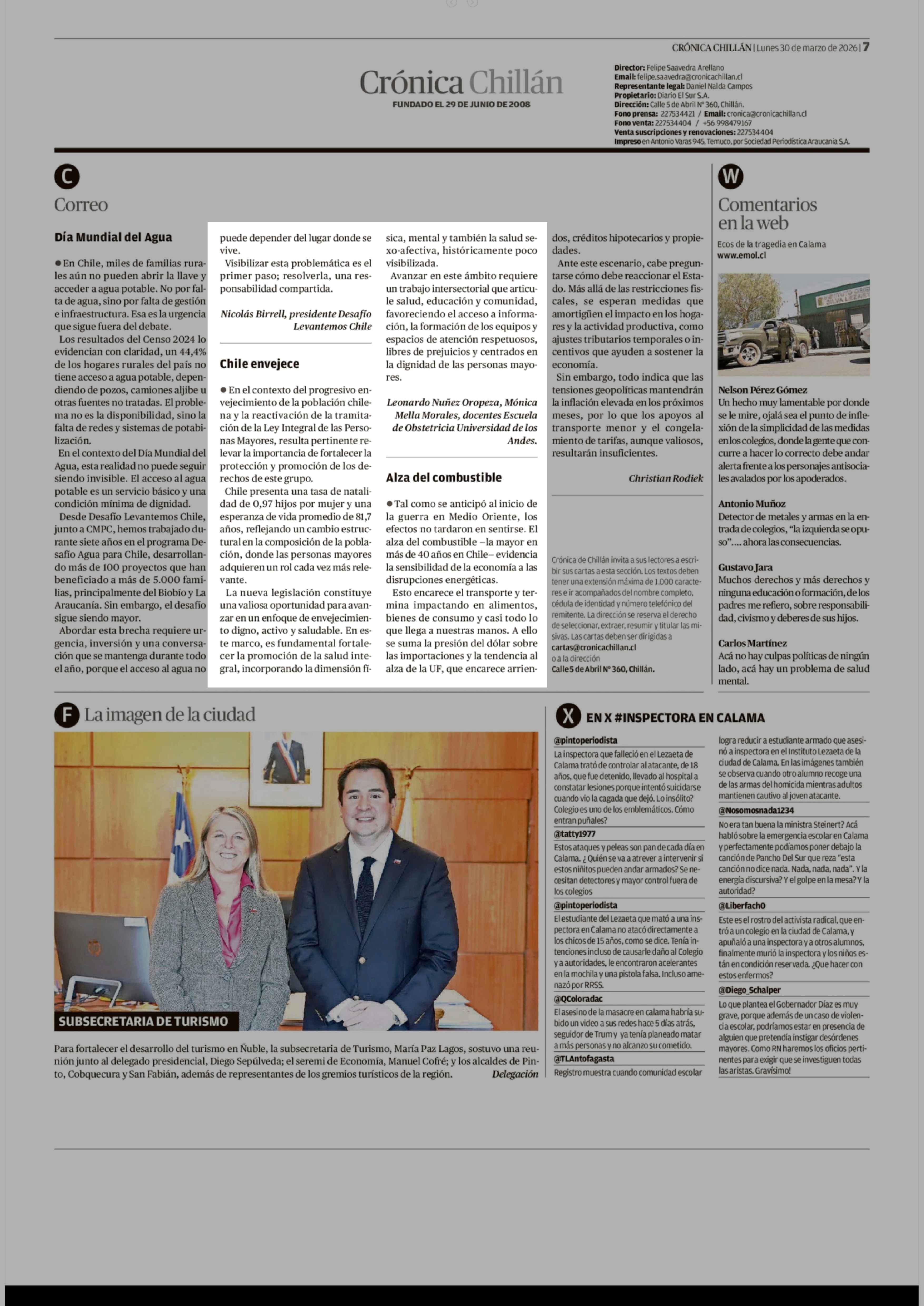 Cartas: Chile envejece 30-03-2026 Crónica de Chillán |