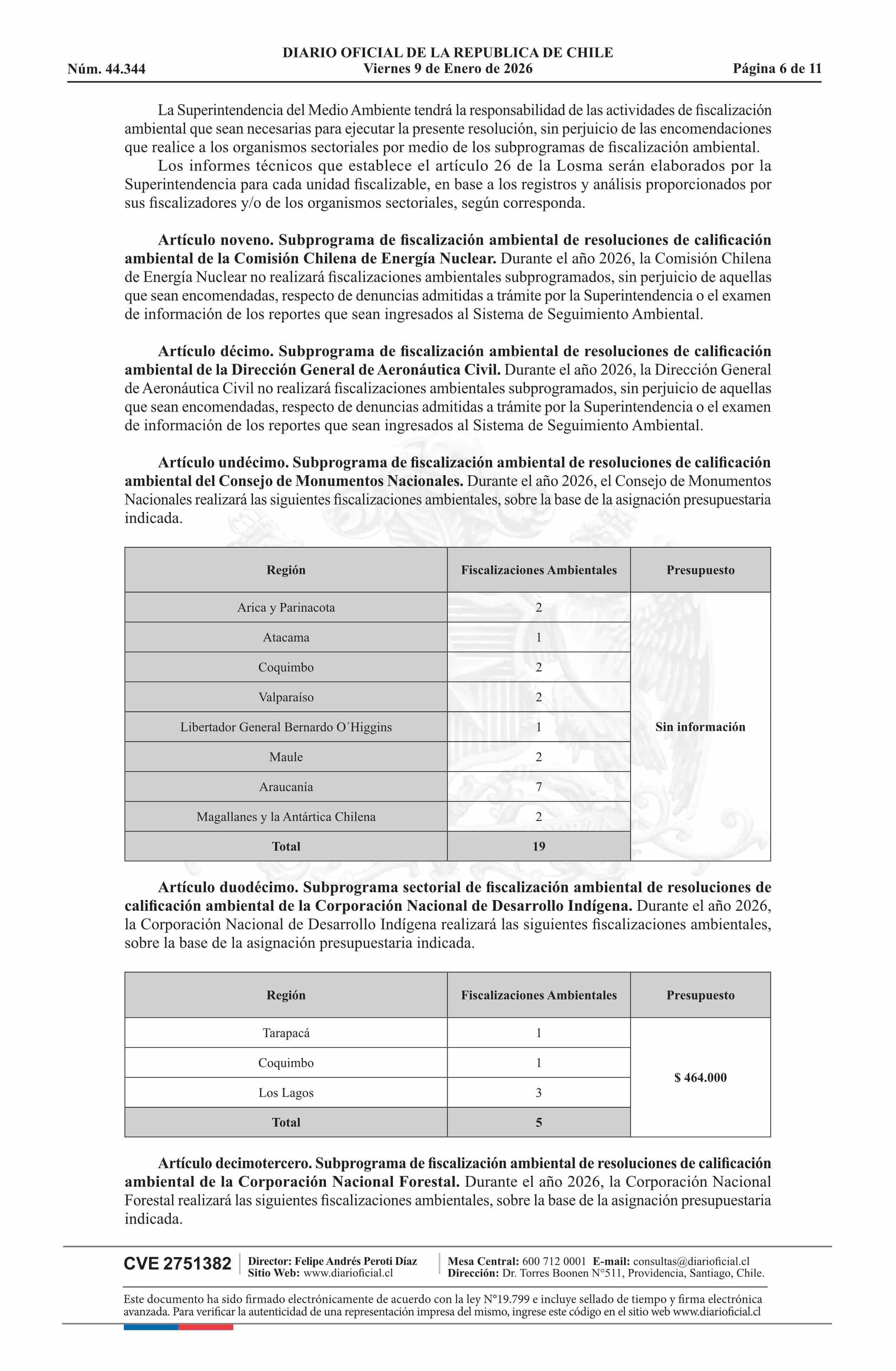 Título: AVISO LICITACIONES: Resolución exenta número 2.999, de 2025.- Fija programa y subprogramas de fiscalización ambiental de resoluciones de calificación ambiental para el año 2026