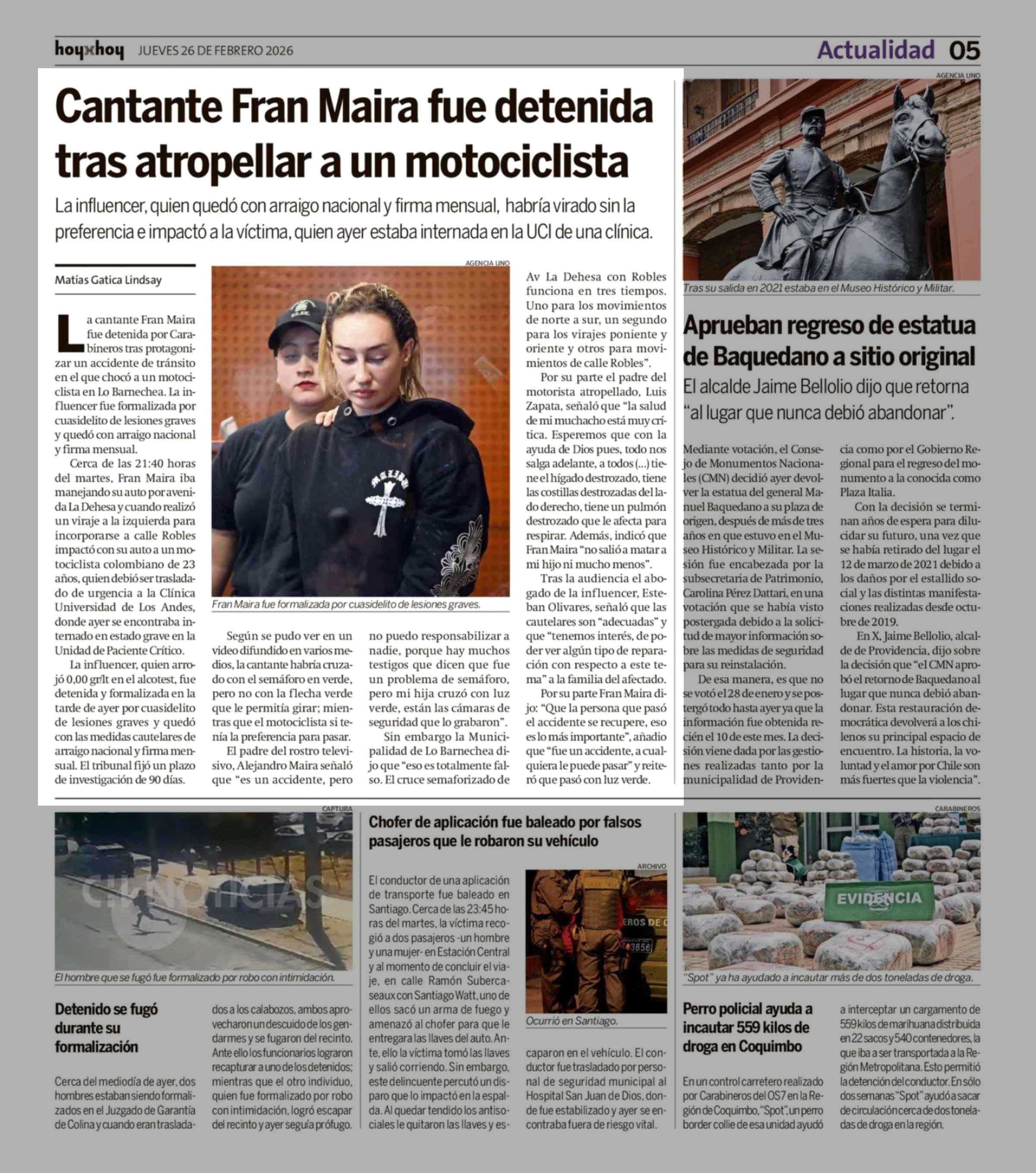 Cantante Fran Maira fue detenida tras atropellar a un motociclista 26-02-2026 Hoy x Hoy |