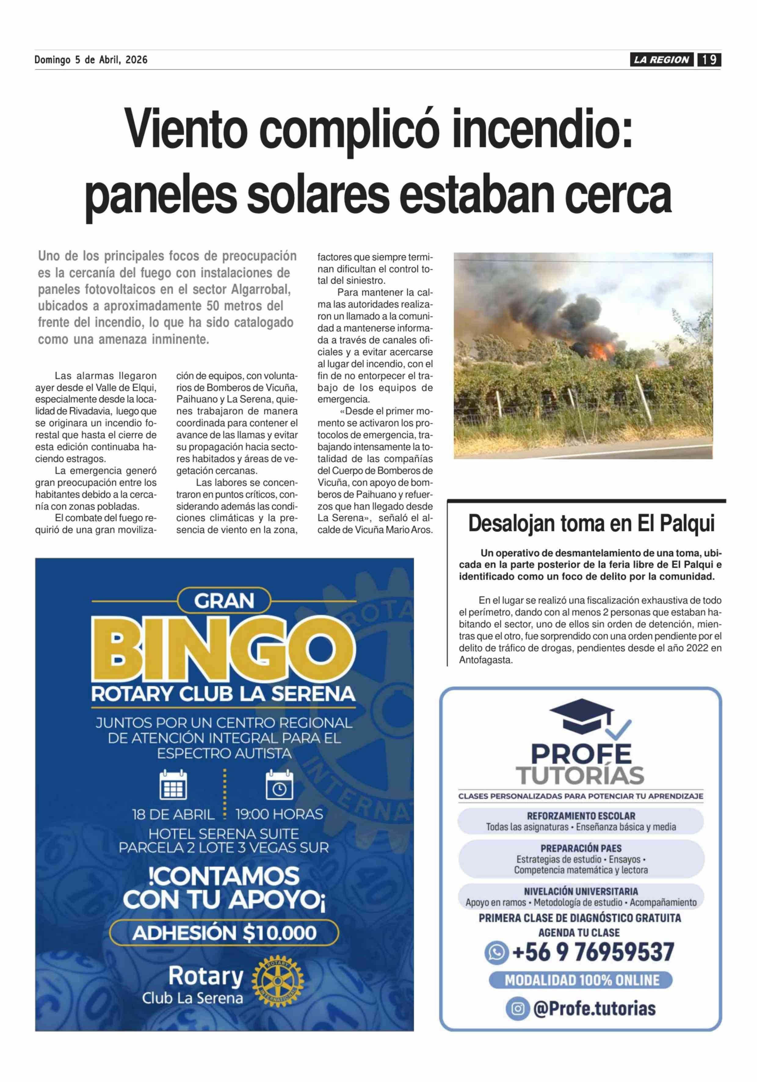 Viento complicó incendio: paneles solares estaban cerca 05-04-2026 Diario la Región |