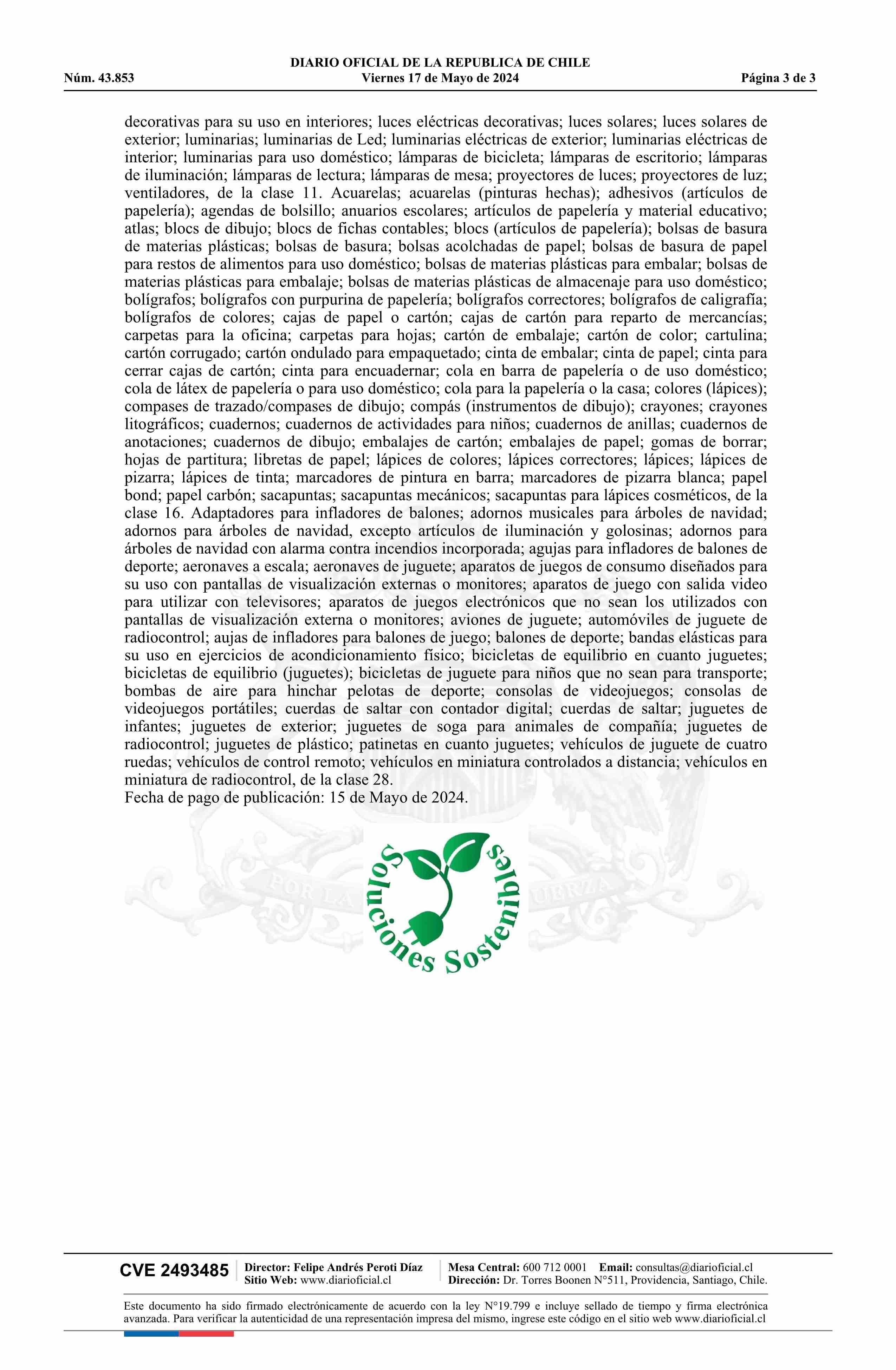 Solicitud número 1571098.- Soluciones Sostenibles 17-05-2024 Diario Oficial Edición Electrónica |