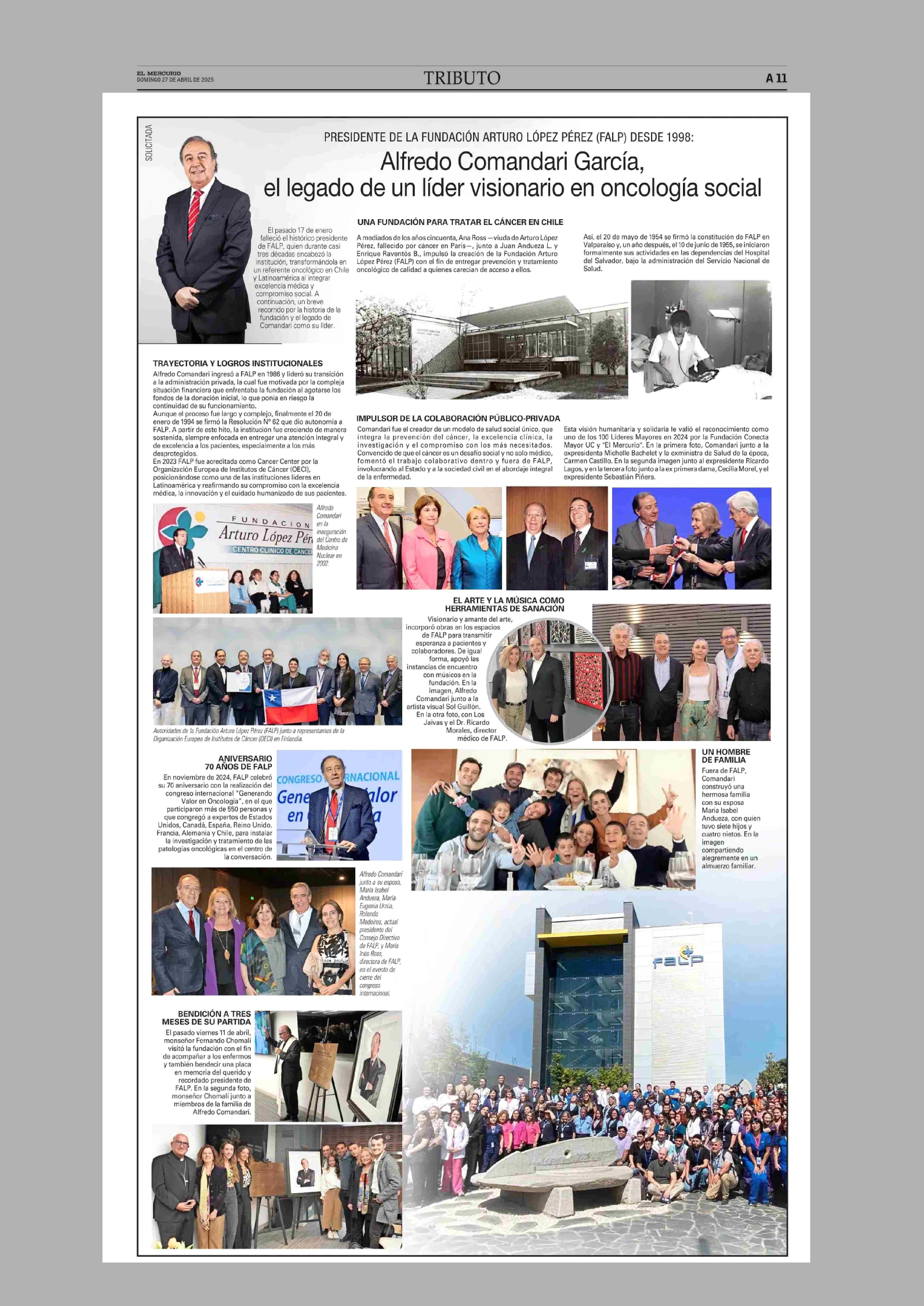 Alfredo Comandari García, el legado de un líder visionario en oncología social 27-04-2025 El Mercurio |