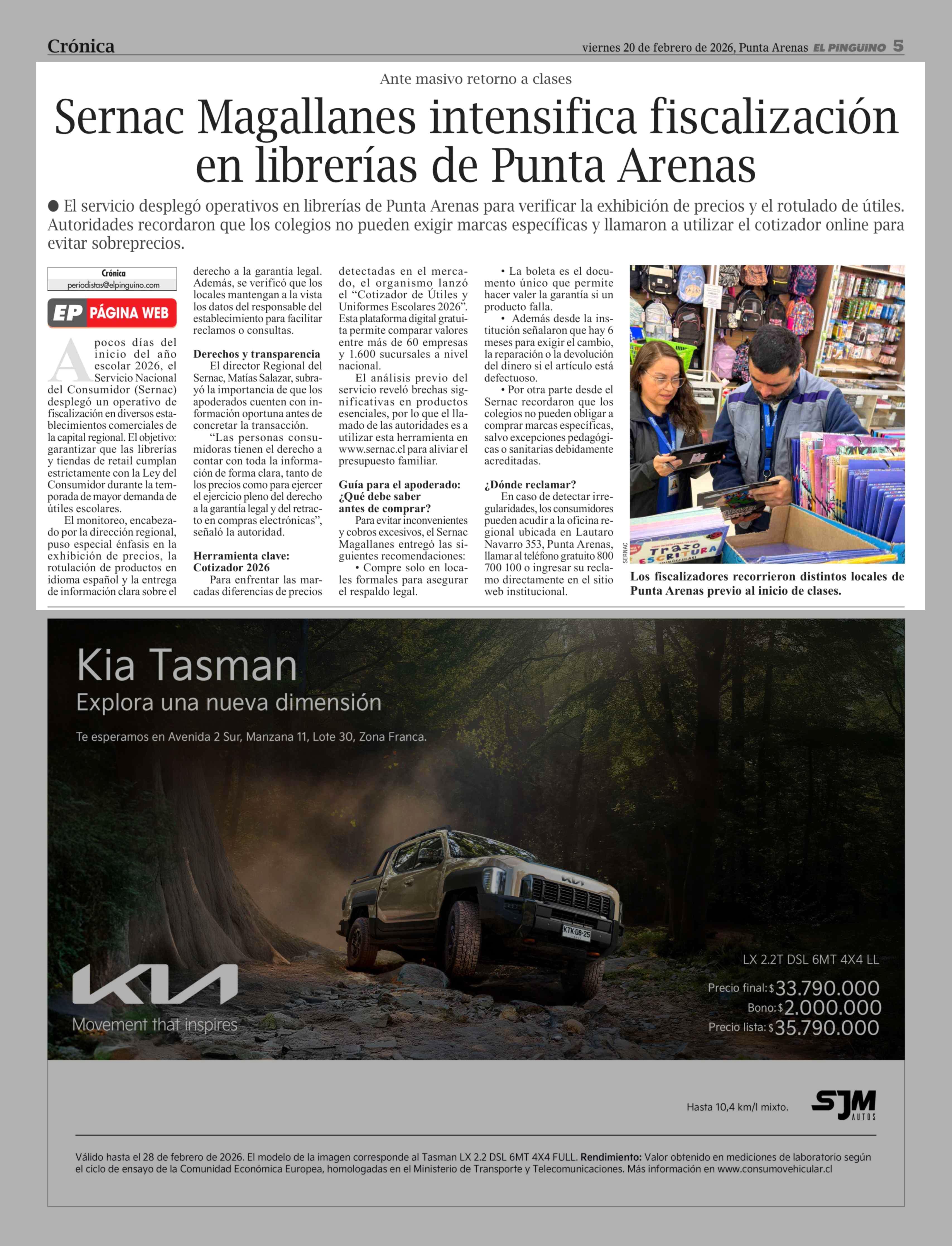 Sernac Magallanes intensifica fiscalización en librerías de Punta Arenas 20-02-2026 El Pingüino |