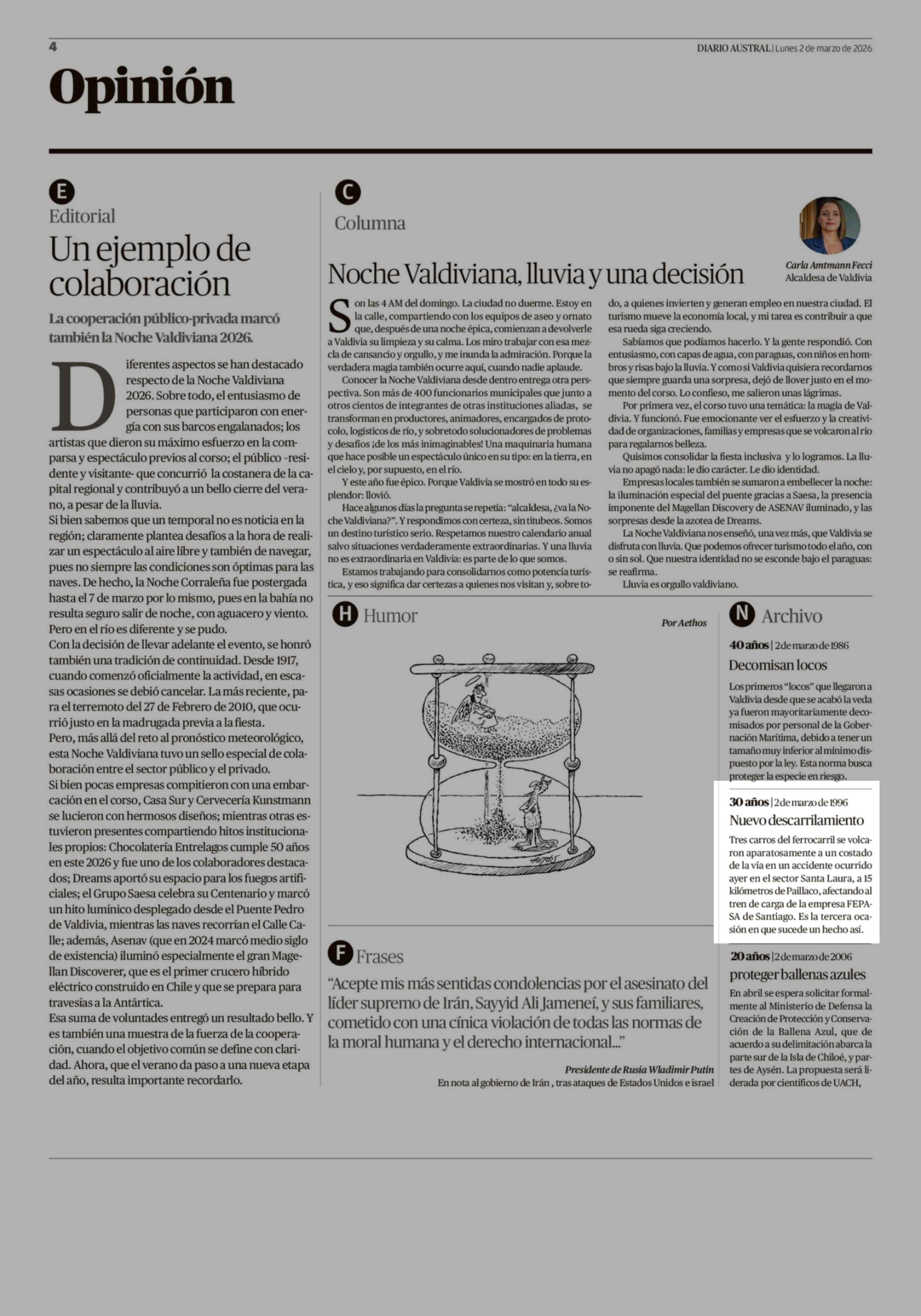 | Fecha: | 02-03-2026 | Sector: | Noticia general | Región: | Región de Los Ríos |