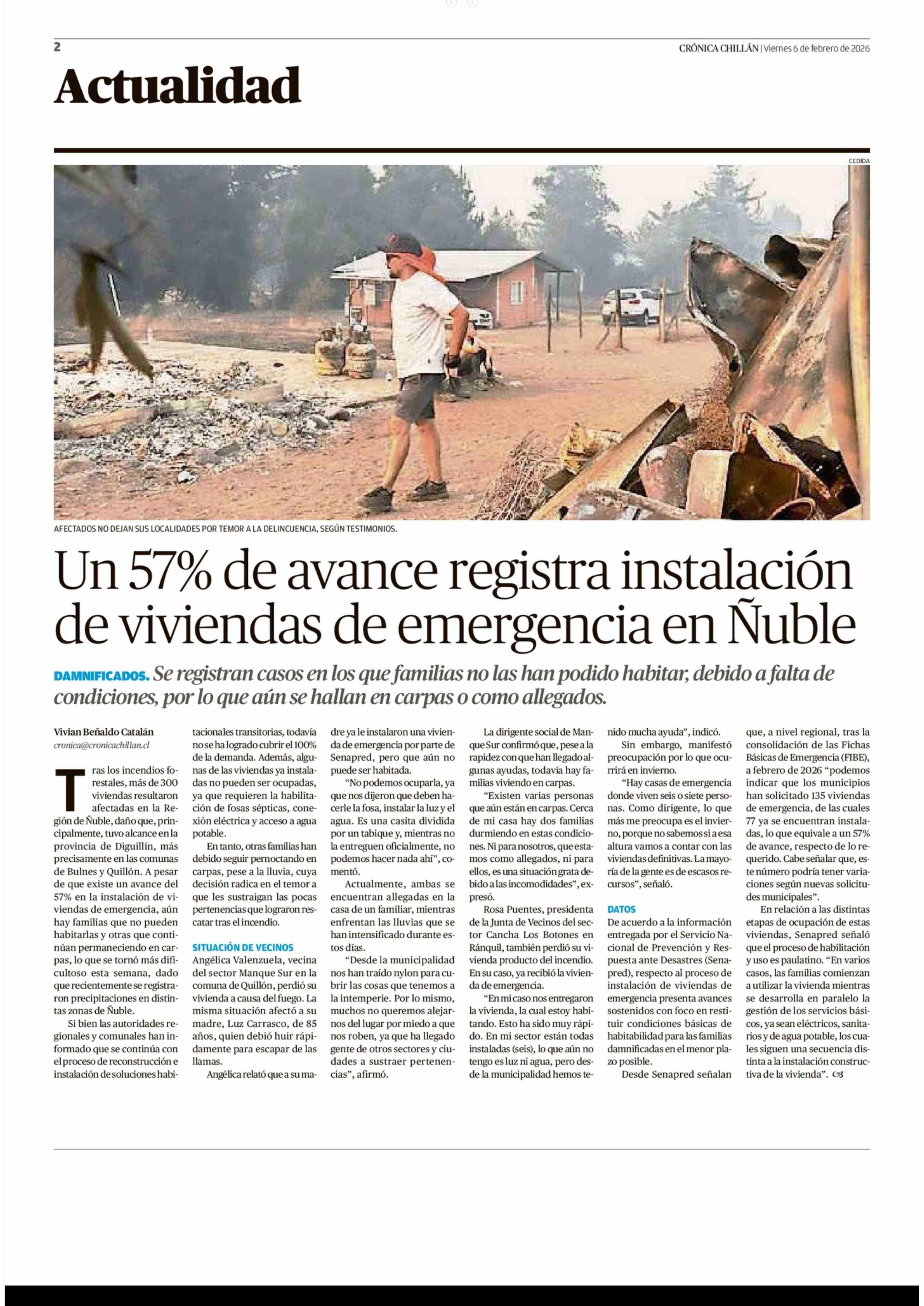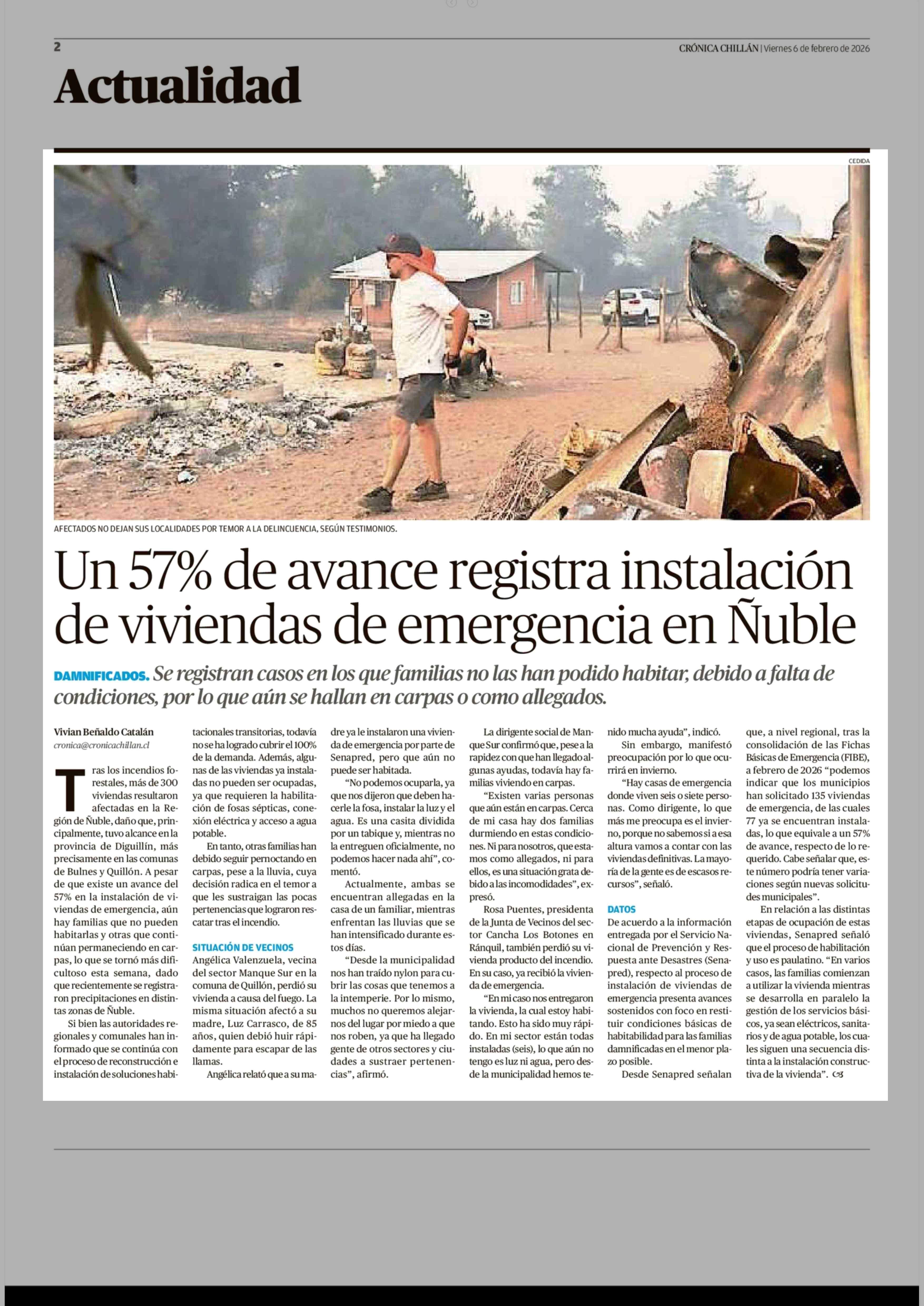 Un 57% de avance registra instalación de viviendas de emergencia en Nuble 06-02-2026 Crónica de Chillán |