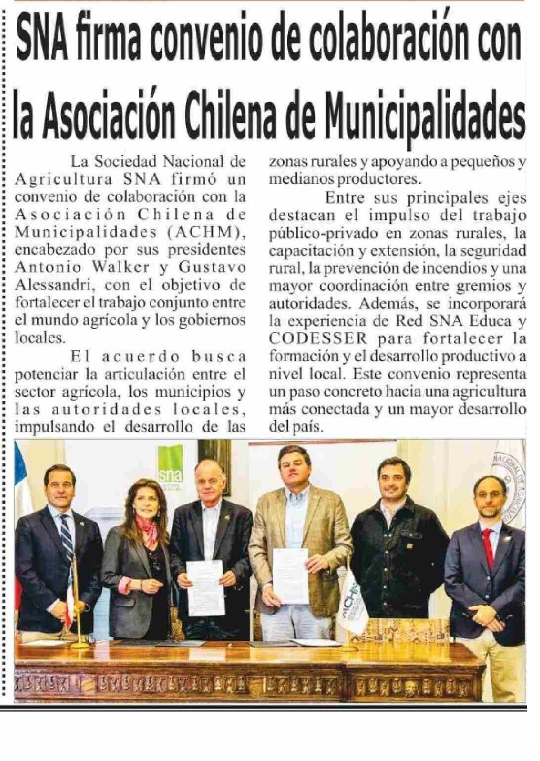 | Título: | SNA arma convenio de cola boración con la Asociación Chilena de Municipalidades |