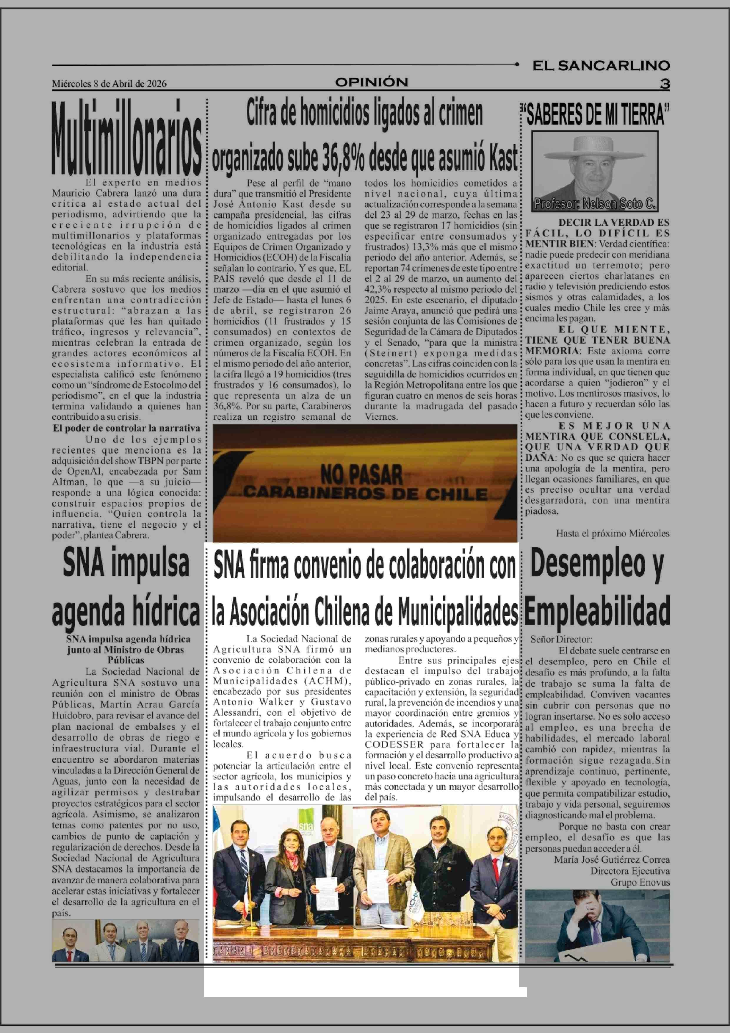 SNA arma convenio de cola boración con la Asociación Chilena de Municipalidades 08-04-2026 El Sancarlino |