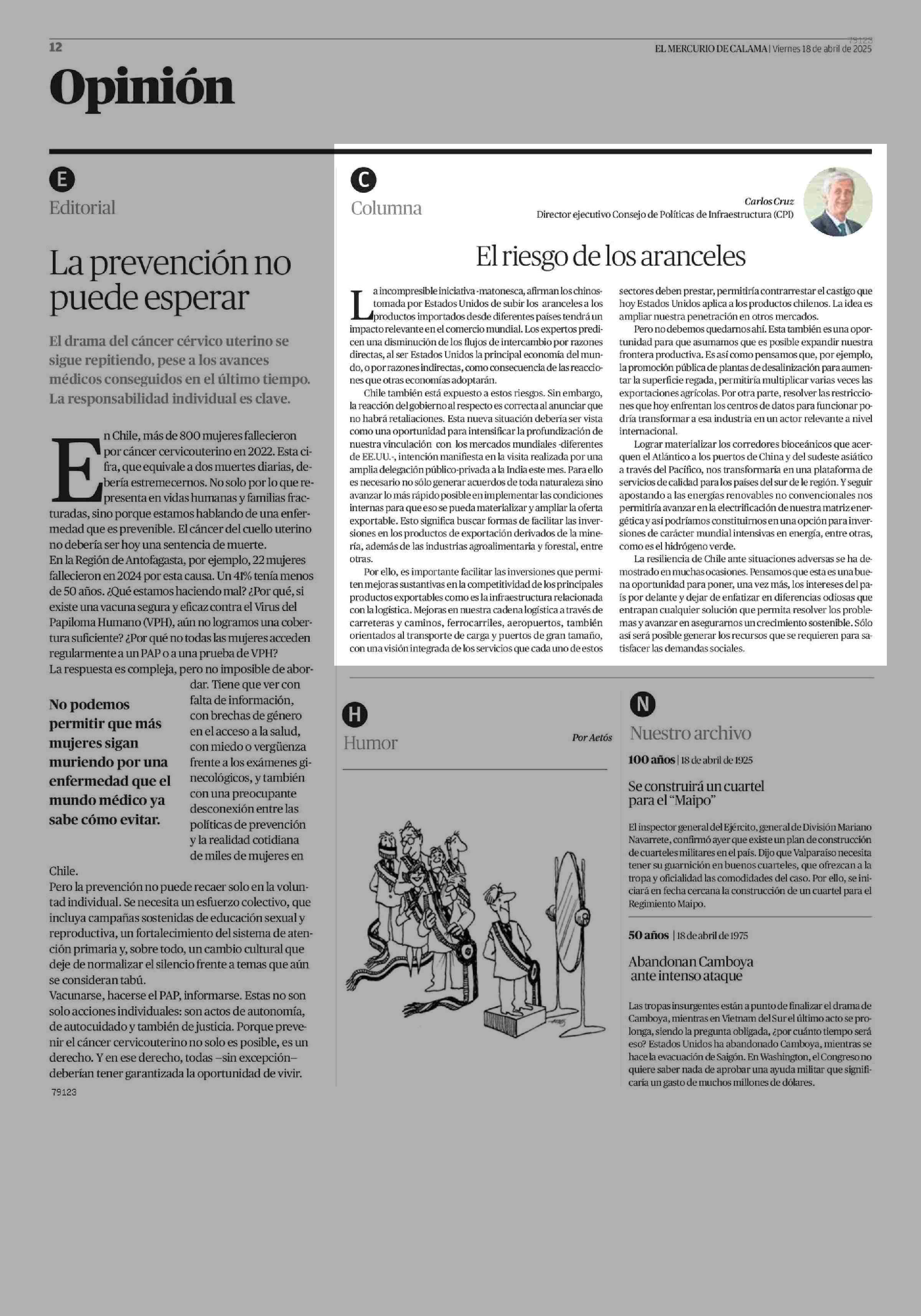 El riesgo de los aranceles 18-04-2025 El Mercurio de Calama |