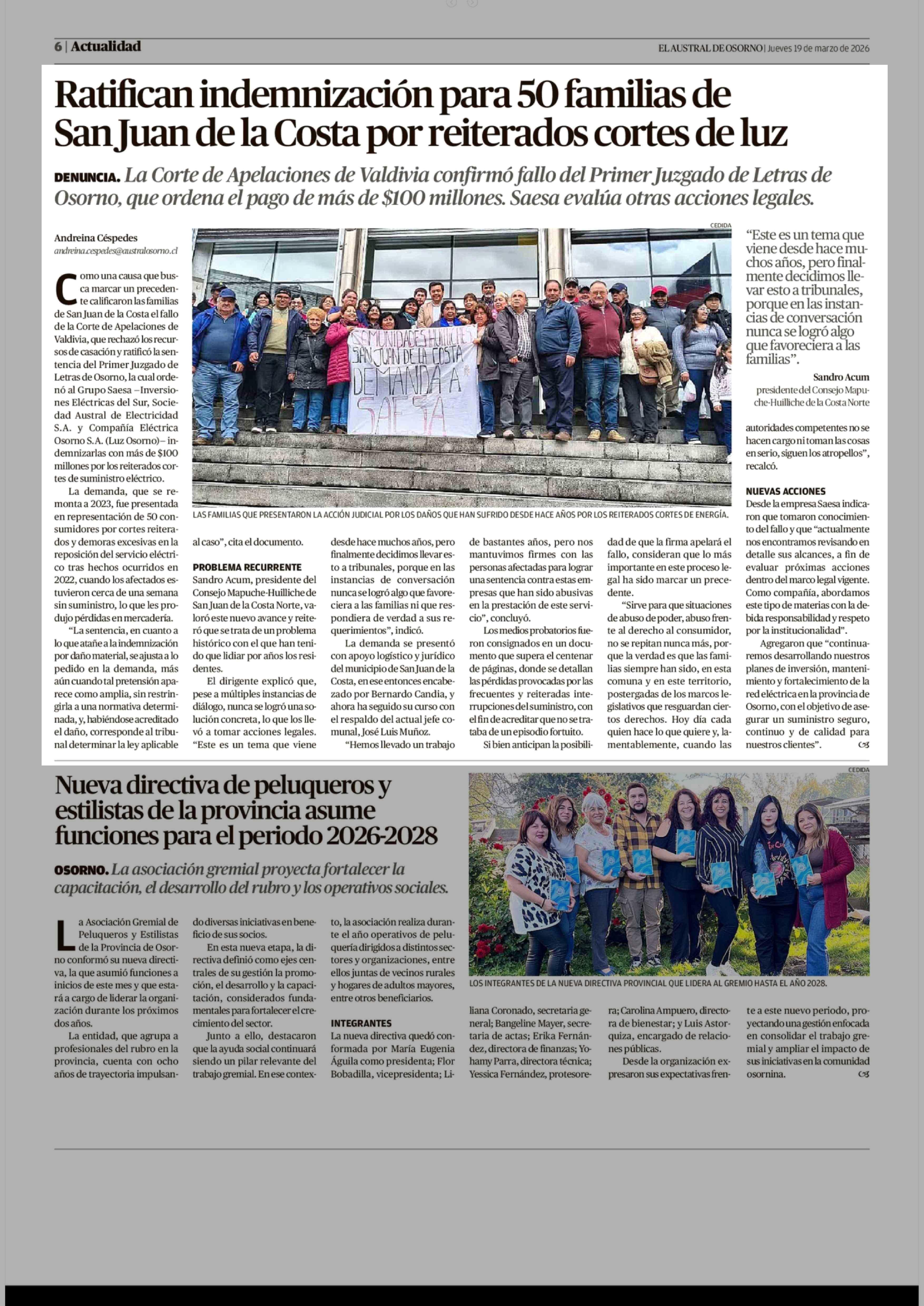 Fuente: El Austral de Osorno (El Austral de Osorno) Página(s): 6