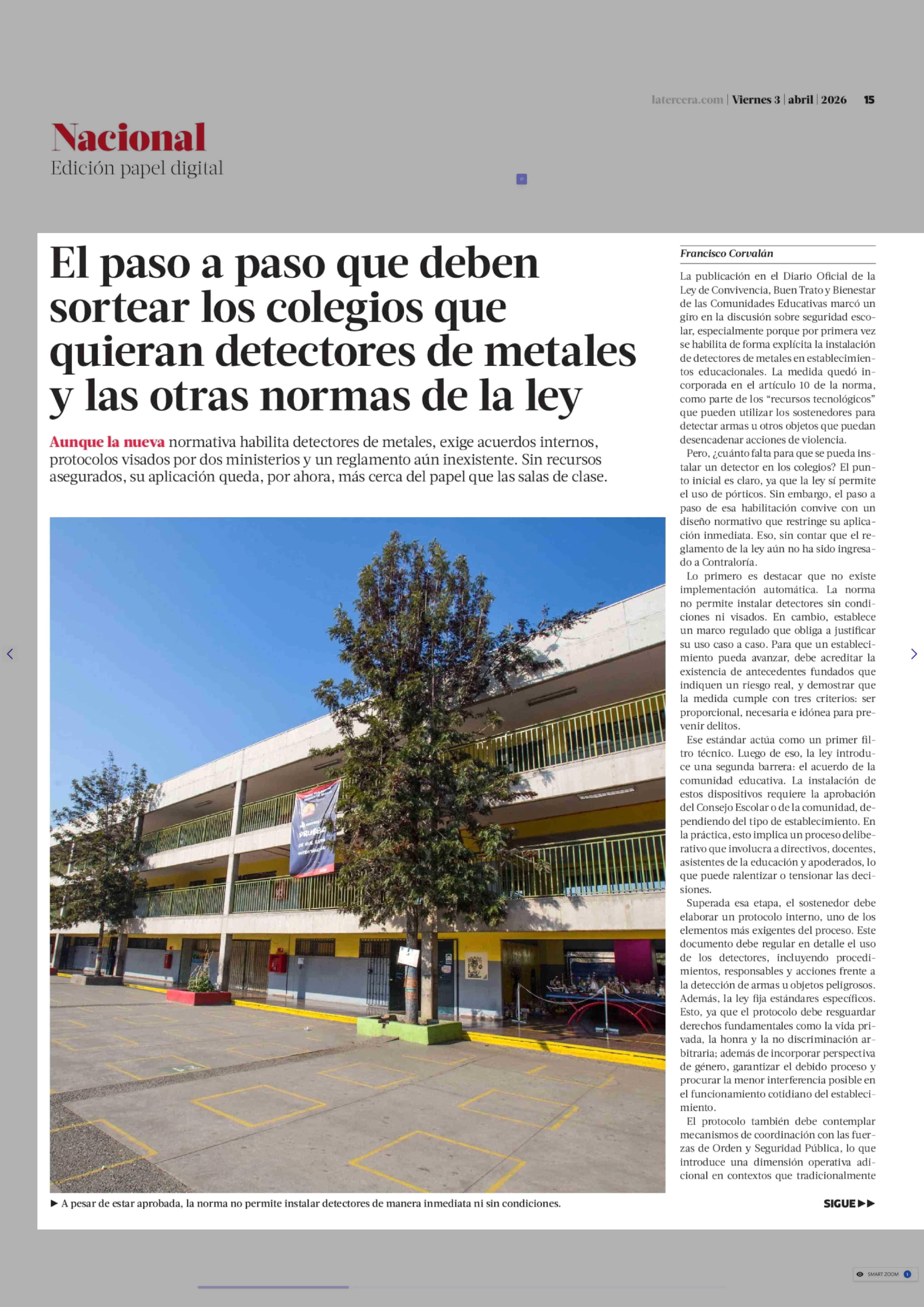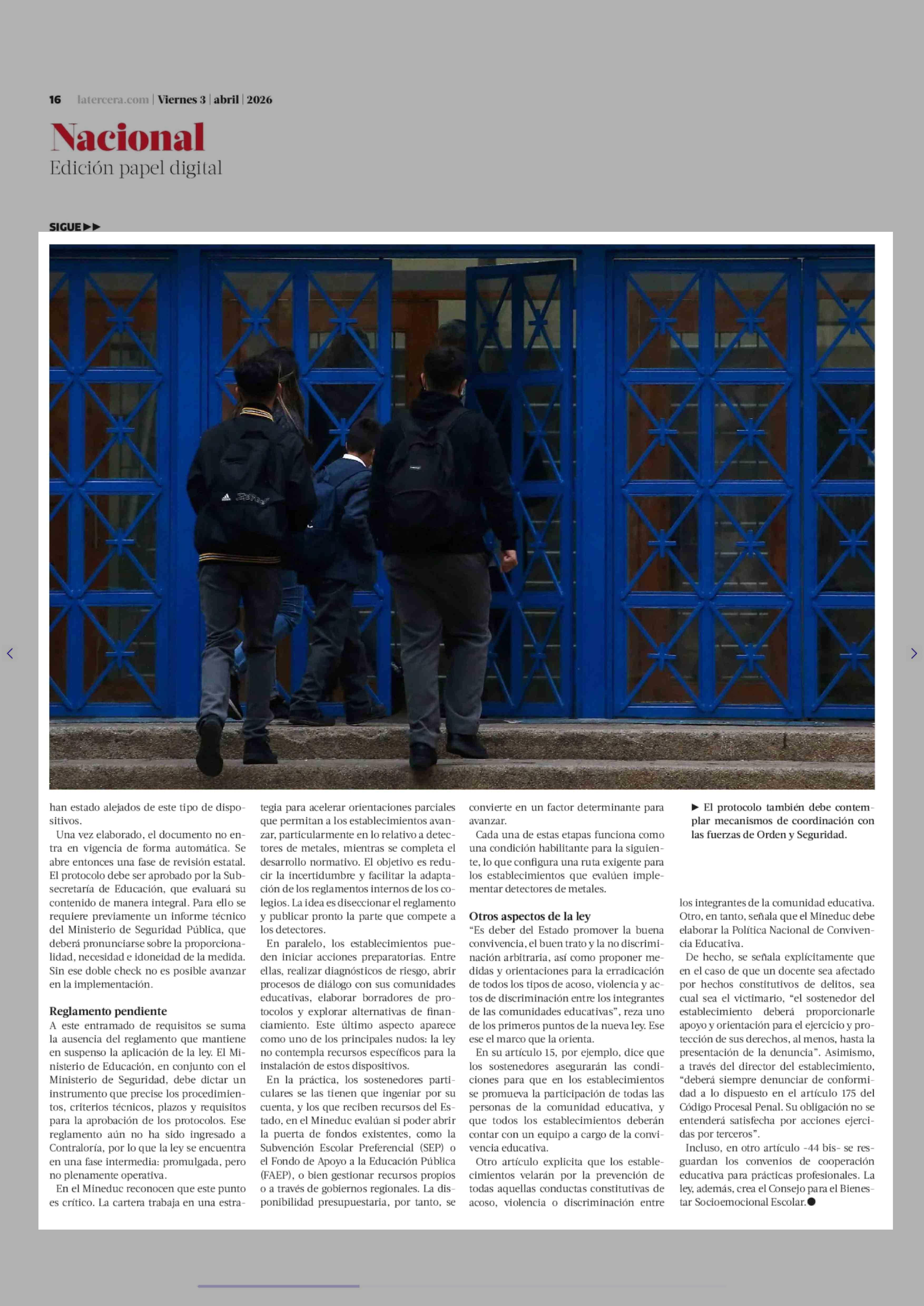 El paso a paso que deben sortear los colegios que quieran detectores de metales y las otras normas de la ley 03-04-2026 La Tercera |