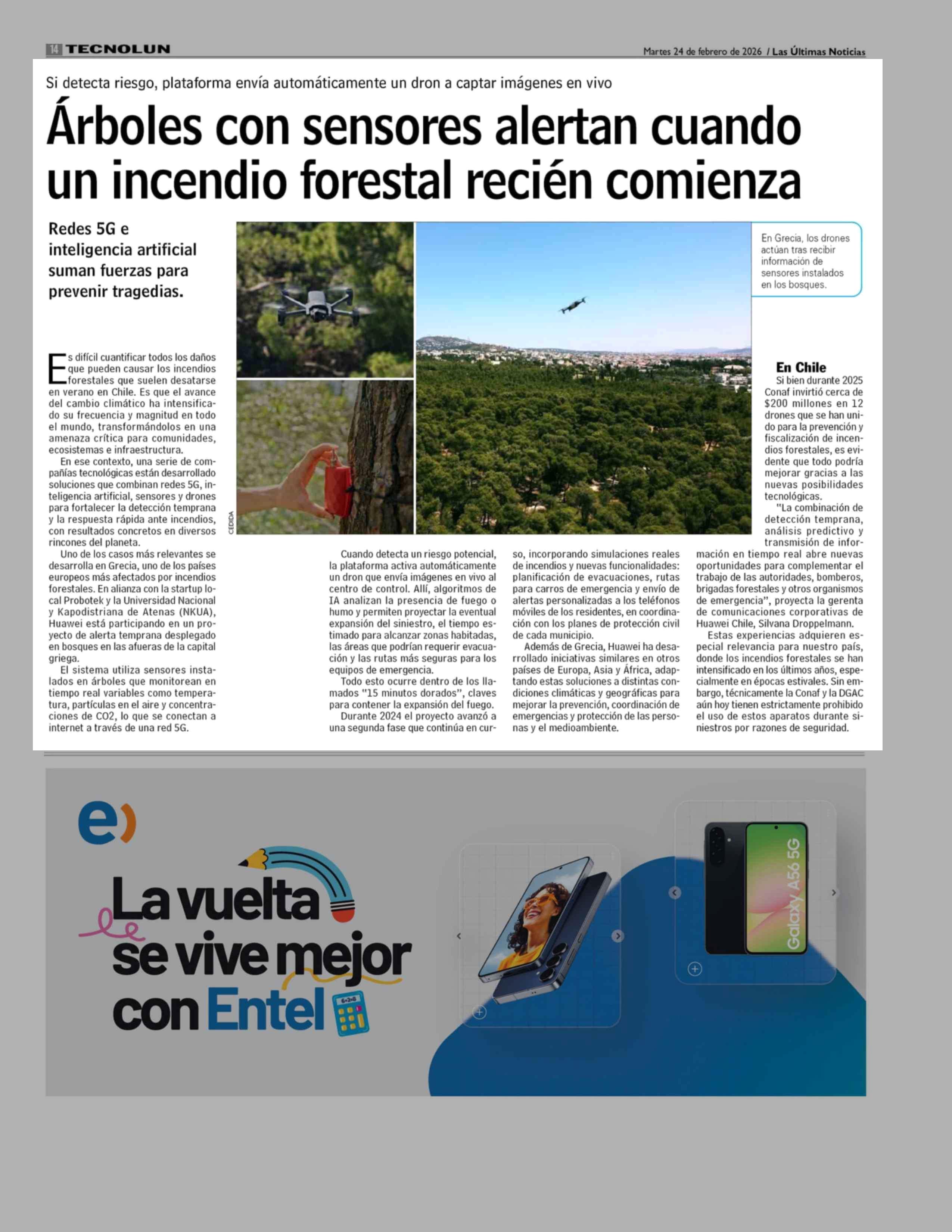 Título: Árboles con sensores alertan cuando un incendio forestal recién comienza