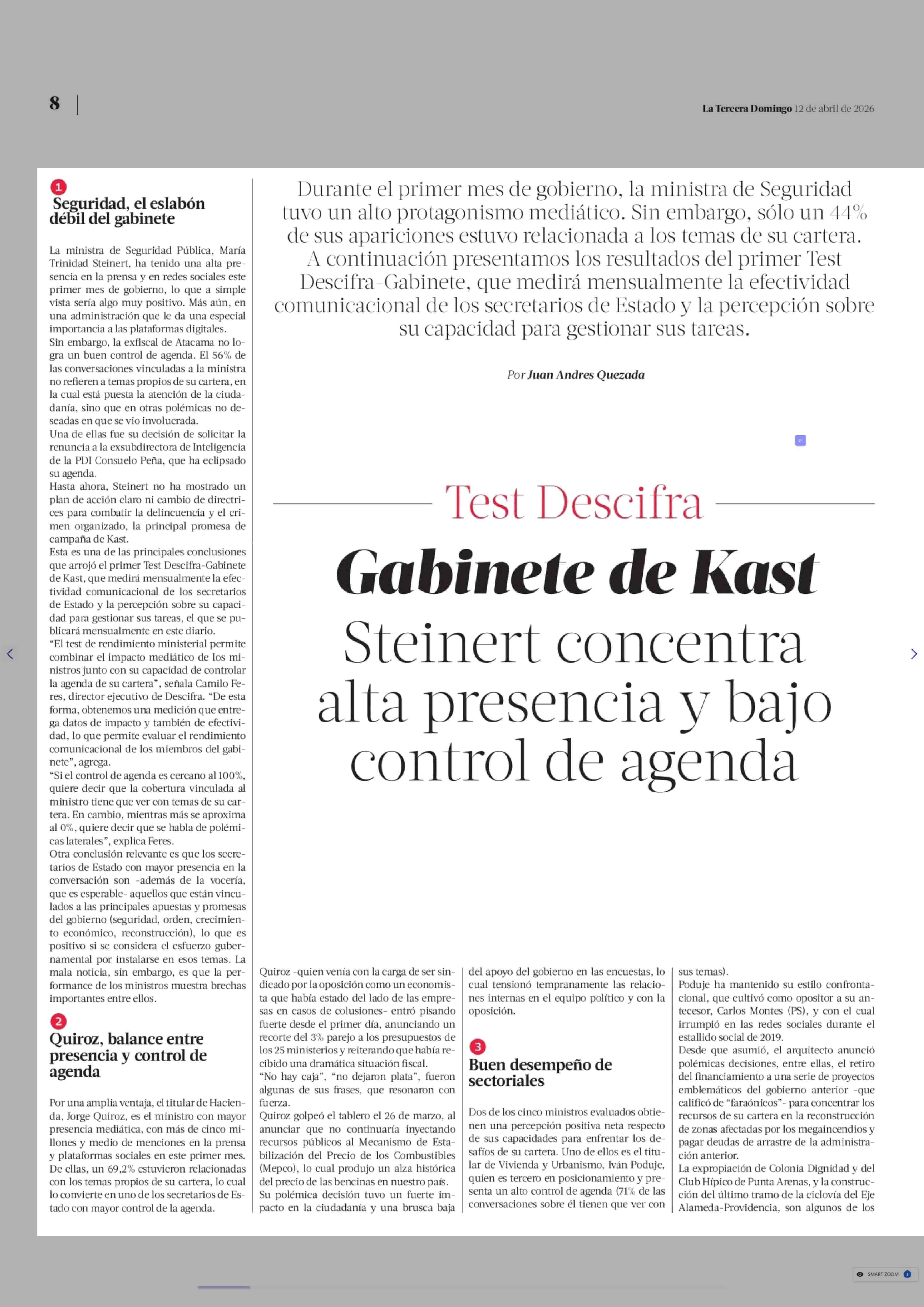 Título: Gabinete de Kast Steinert concentra alta presencia y bajo control de agenda