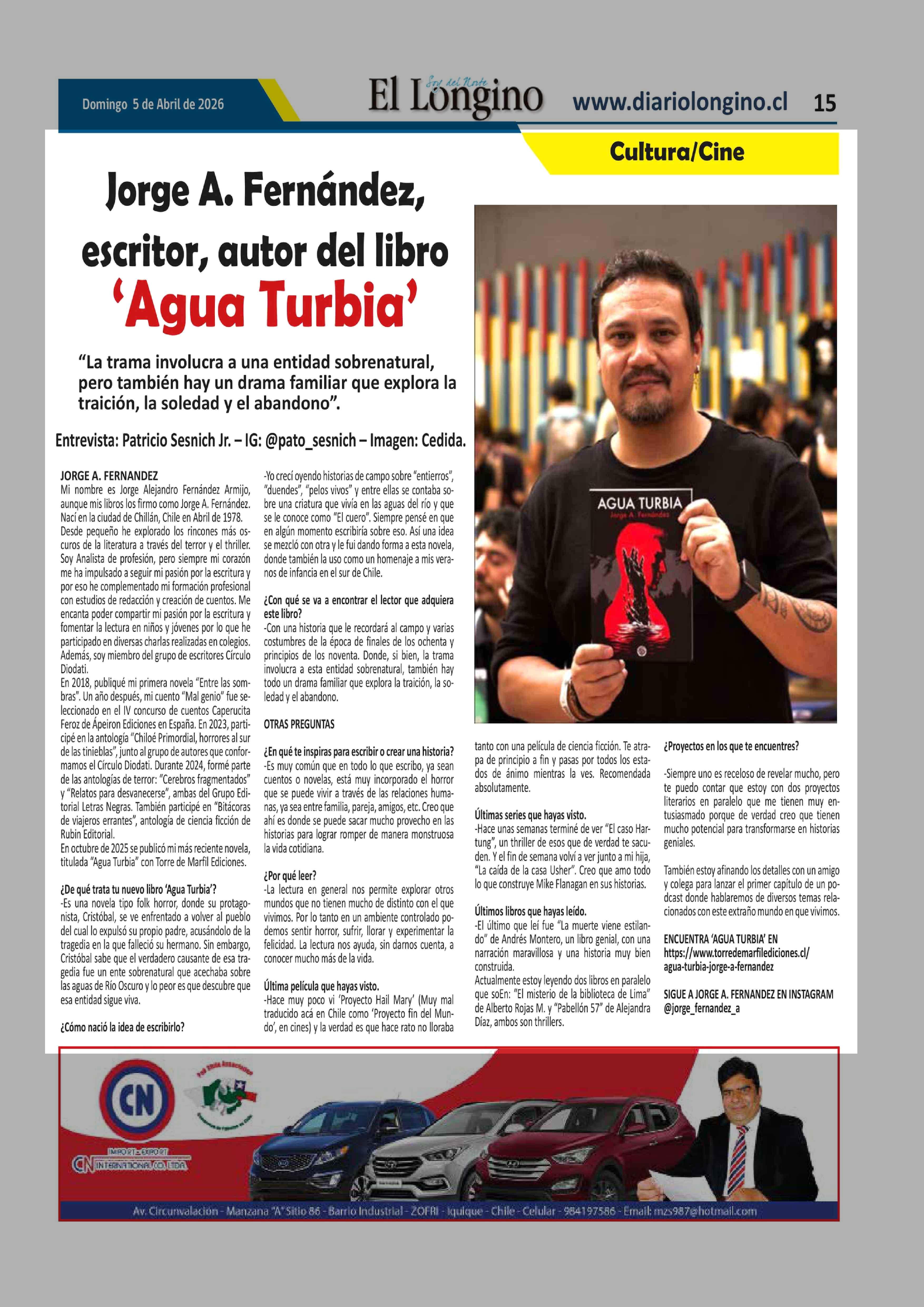 Jorge A. Fernández, escritor, autor del libro 'Agua Turbia' 05-04-2026 El Longino |