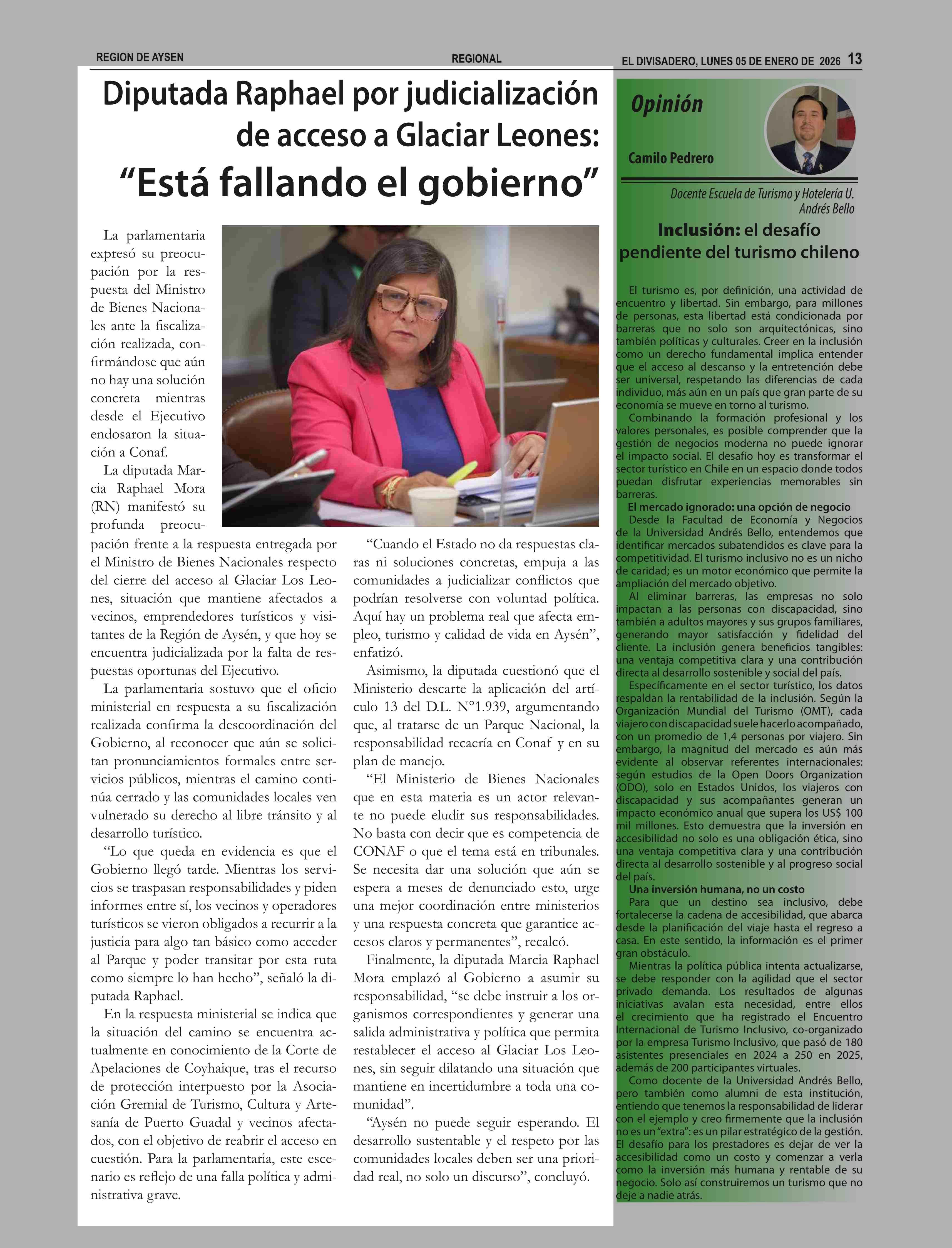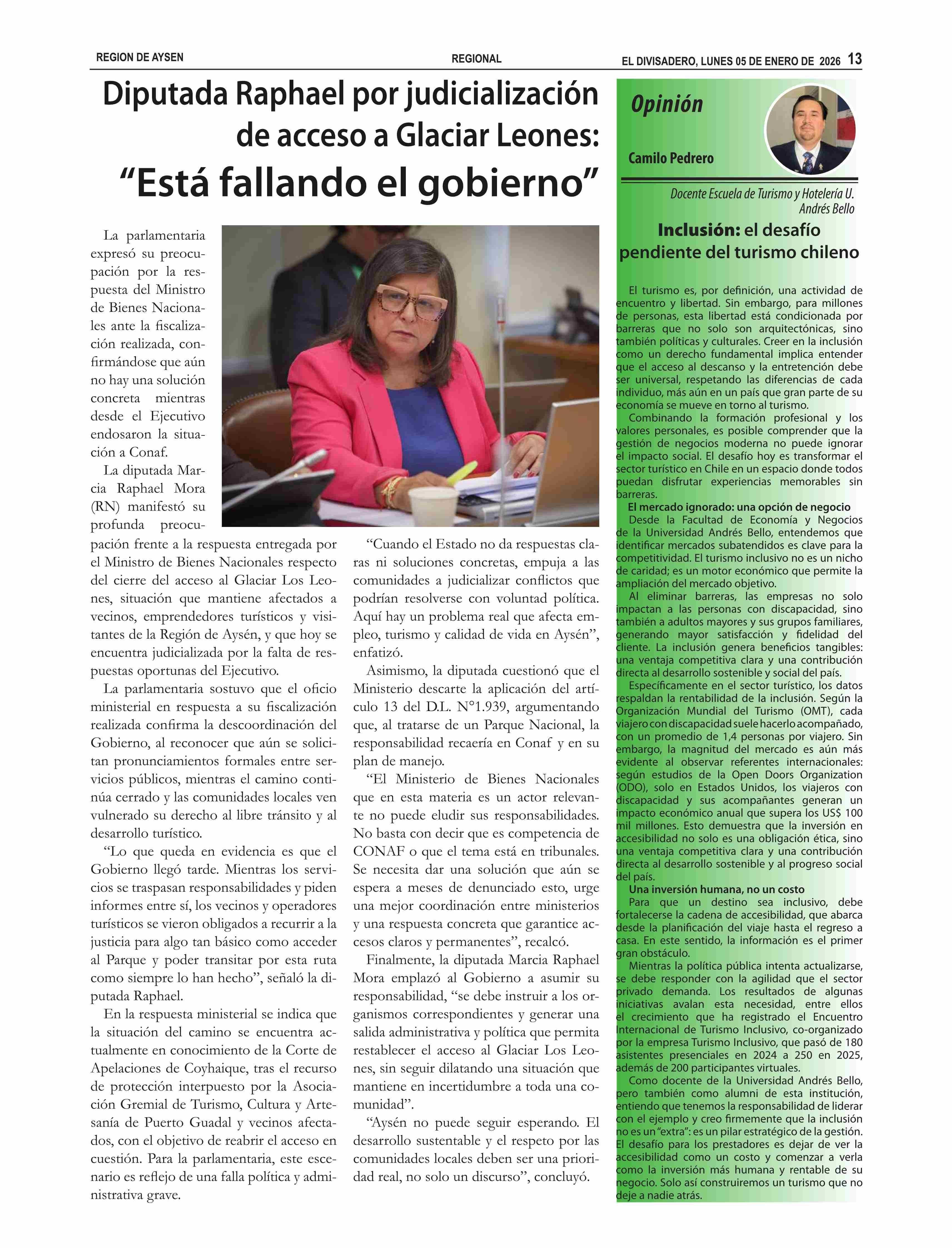 Diputada Raphael por judicialización de acceso a Glaciar Leones: "Está fallando el gobierno" 05-01-2026 El Divisadero |