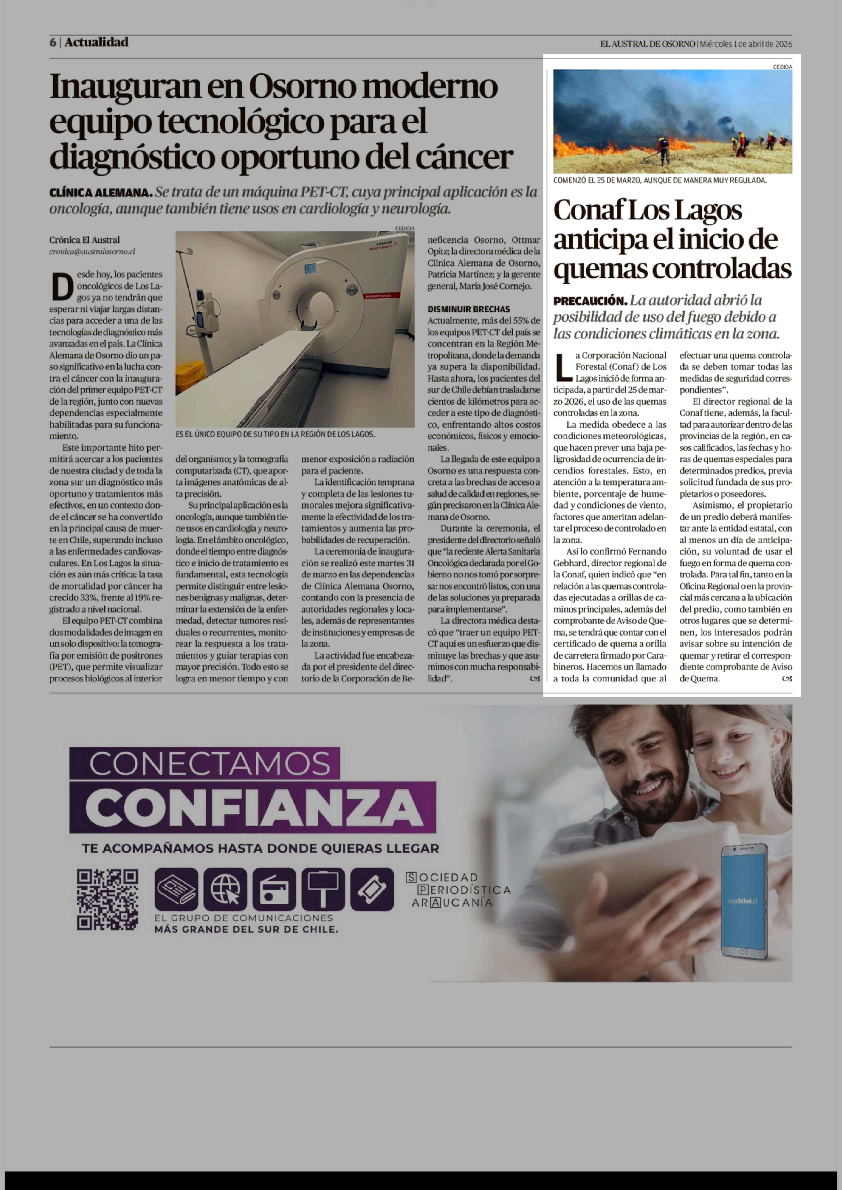 Conaf Los Lagos anticipa el inicio de quemas controladas 01-04-2026 El Austral de Osorno |