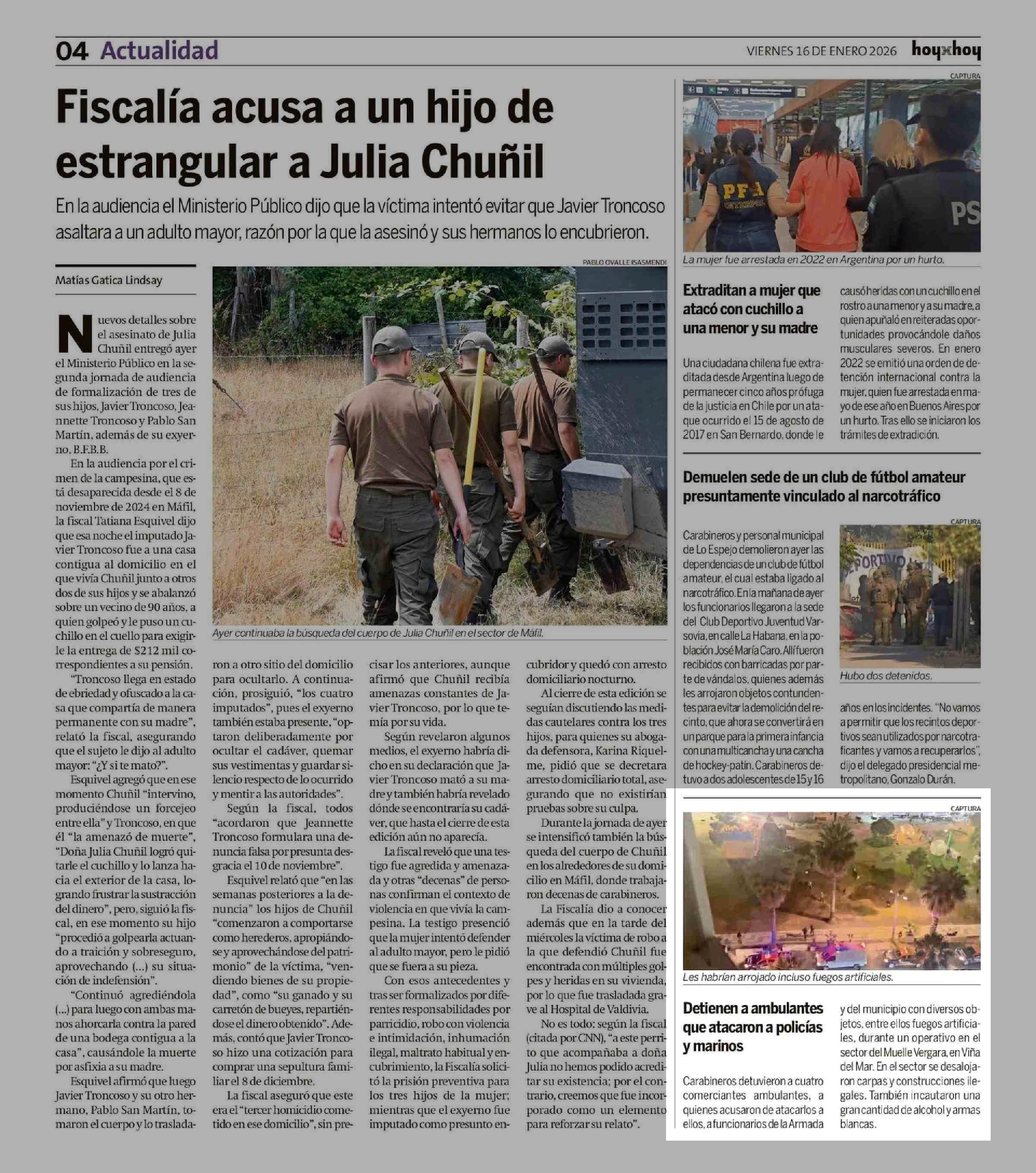 Fecha: 16-01-2026 Sector: Noticia general Región: Región Metropolitana de Santiago