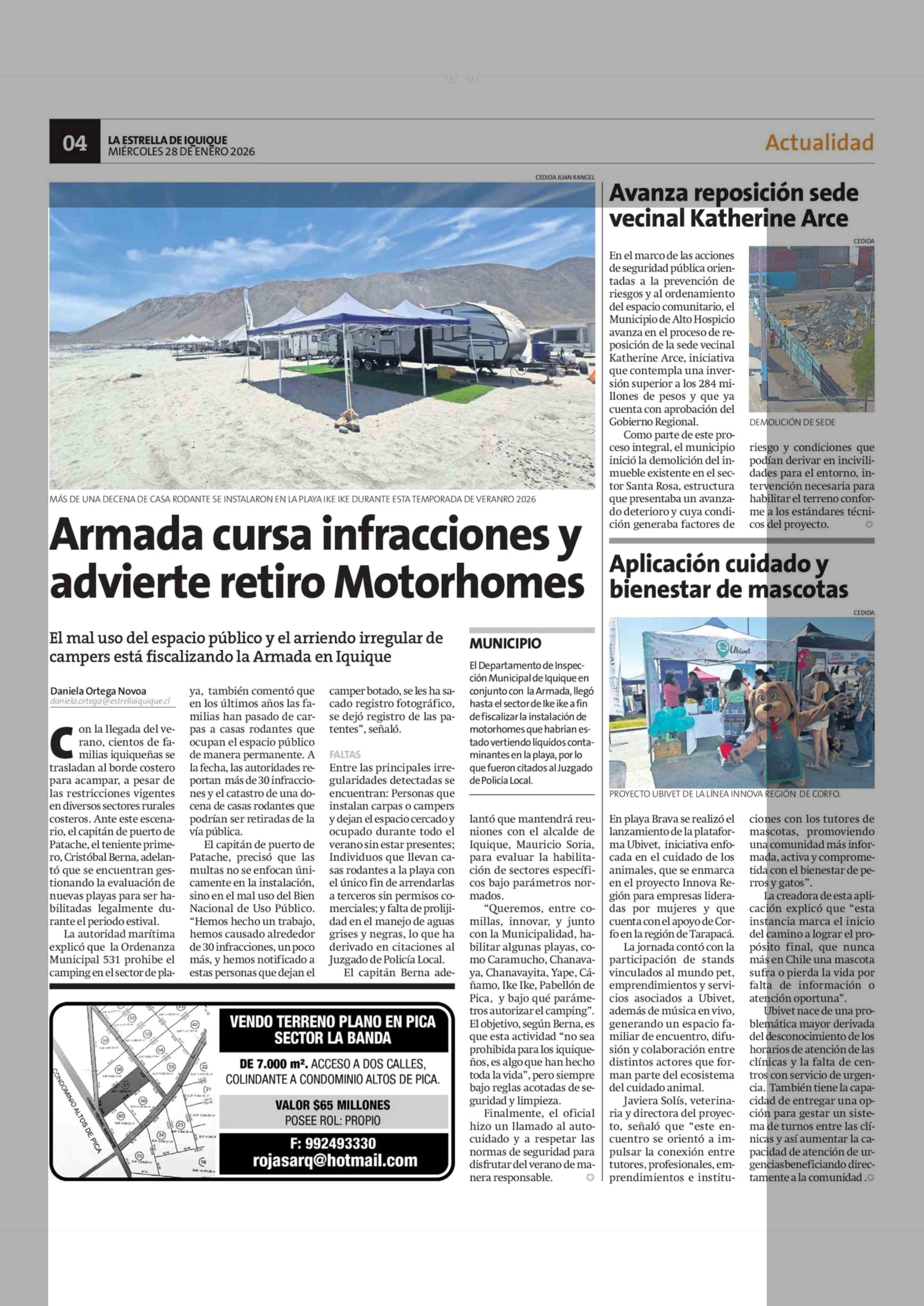 Armada cursa infracciones y advierte retiro Motorhomes 28-01-2026 La Estrella de Iquique |