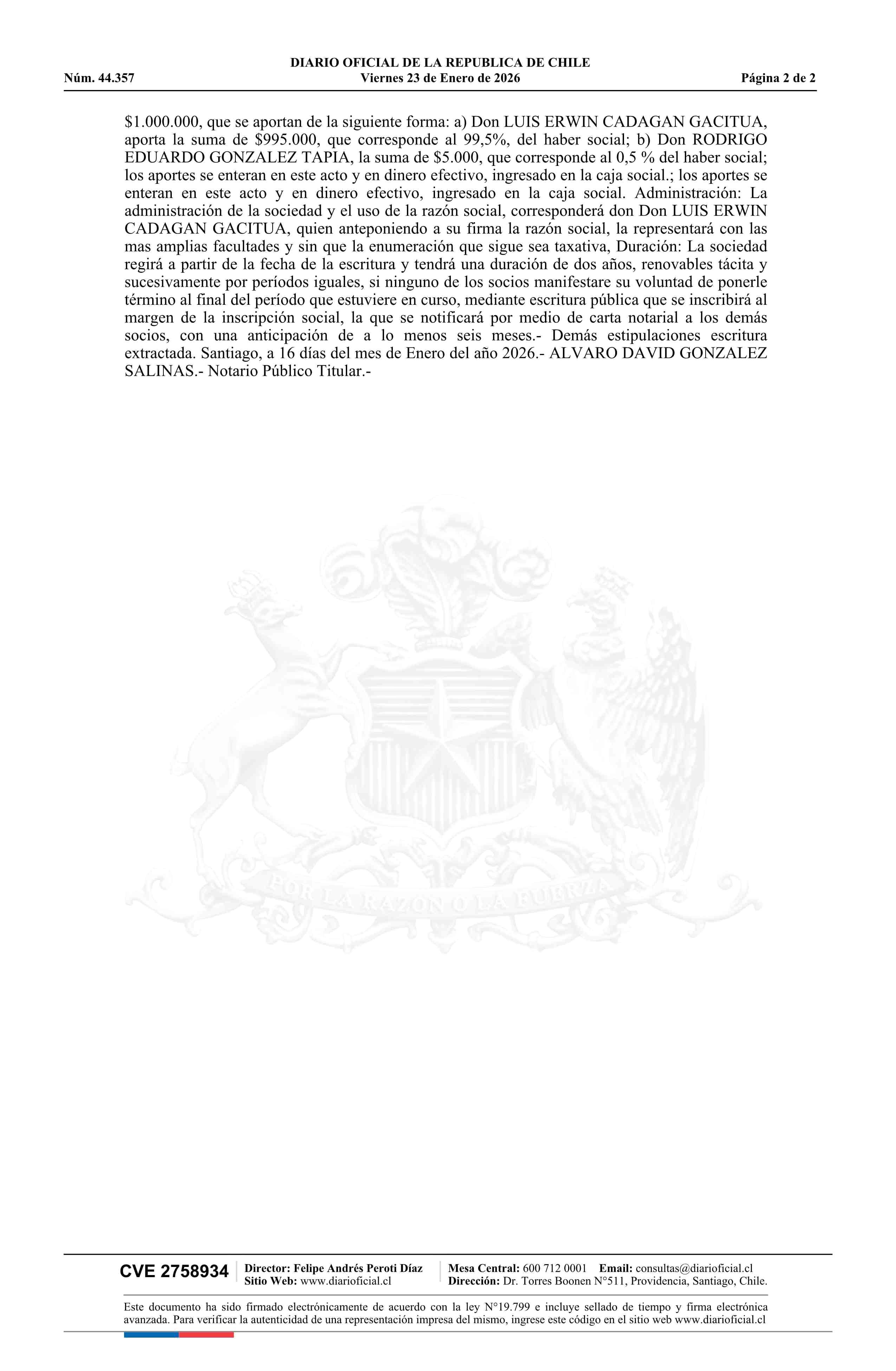 SOCIEDAD DE SERVICIOS PROFESIONALES ESTRATEGICOS RADAR INMOBILIARIO LIMITADA 23-01-2026 Diario Oficial Edición Electrónica |