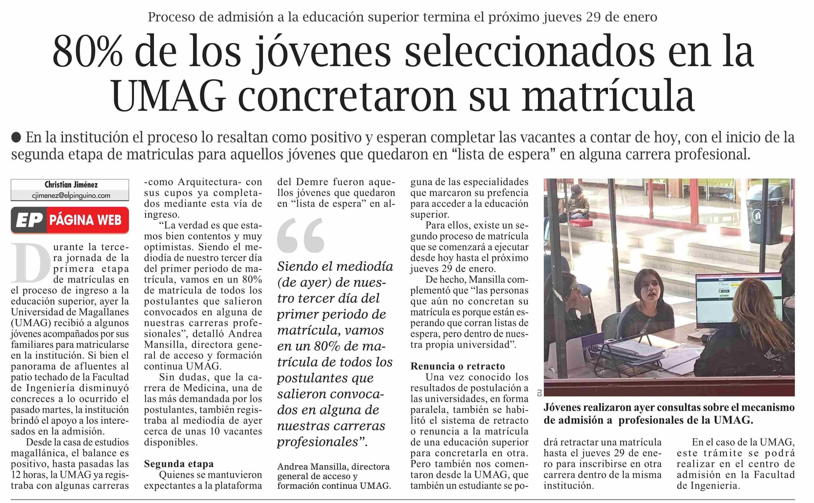 Título: 80% De los jóvenes seleccionados en la UMAG concretaron su matrícula