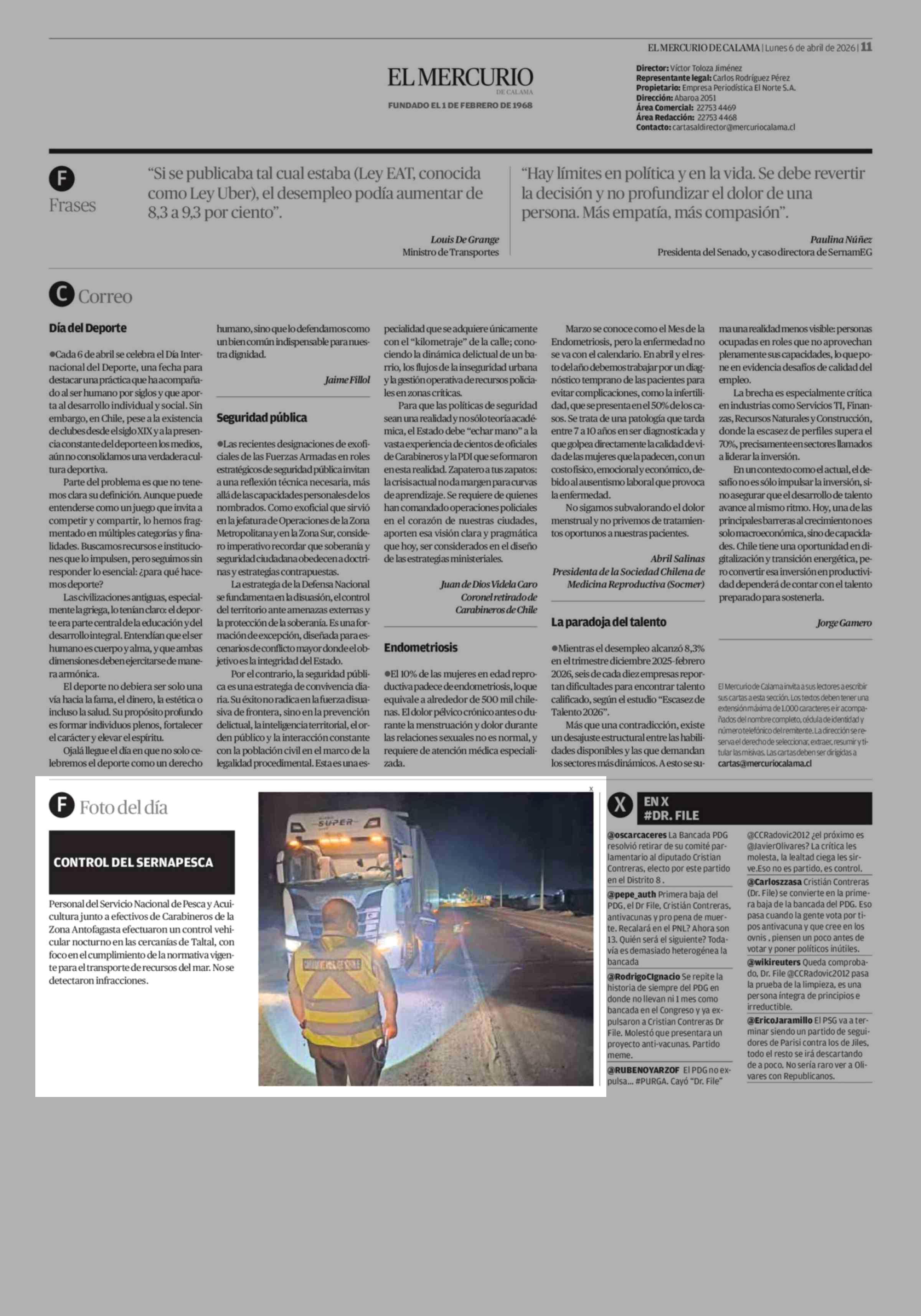 Foto del día 06-04-2026 El Mercurio de Calama |