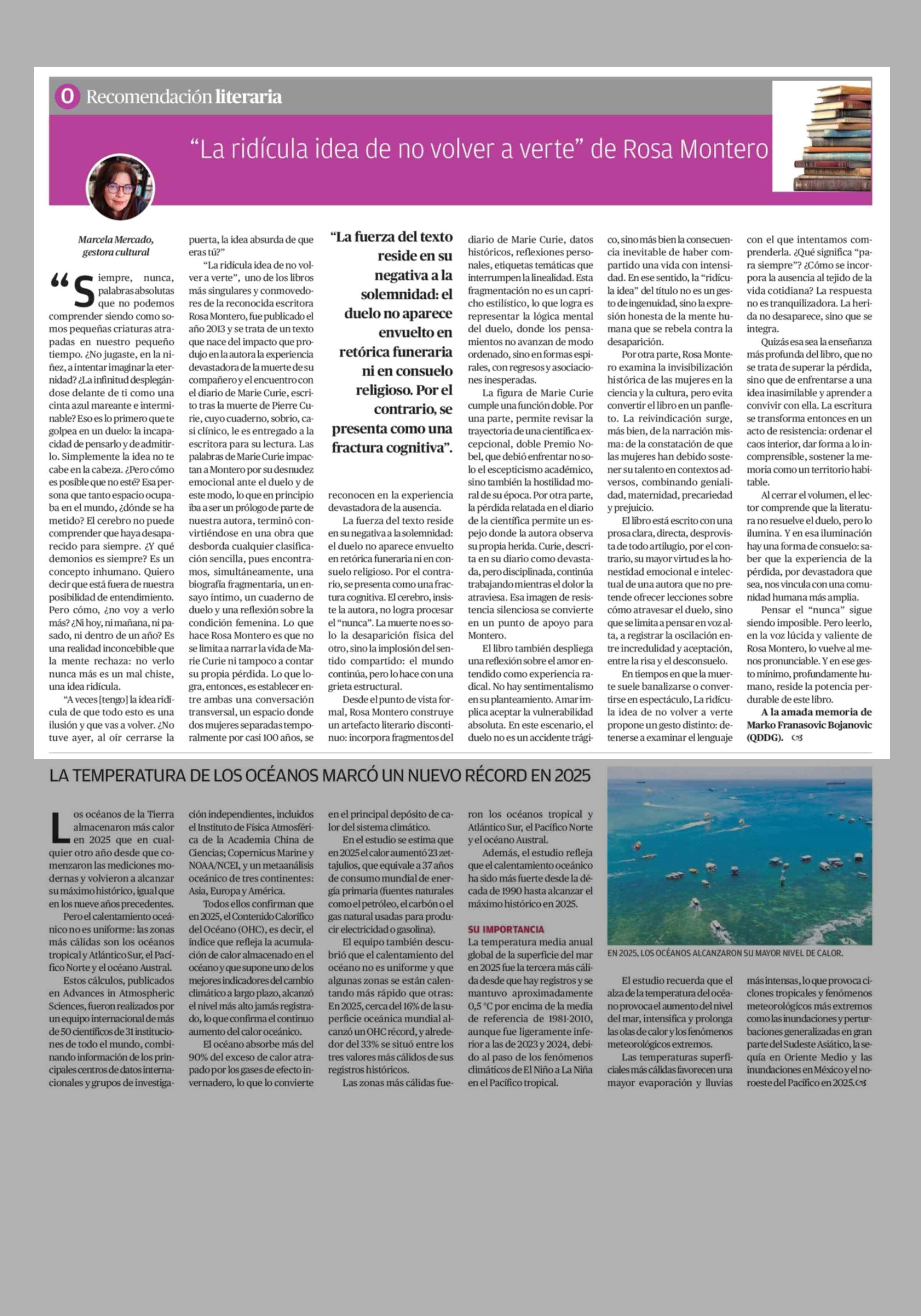 Título: Columnas de Opinión: "La ridícula idea de no volver a verte" de Rosa Montero