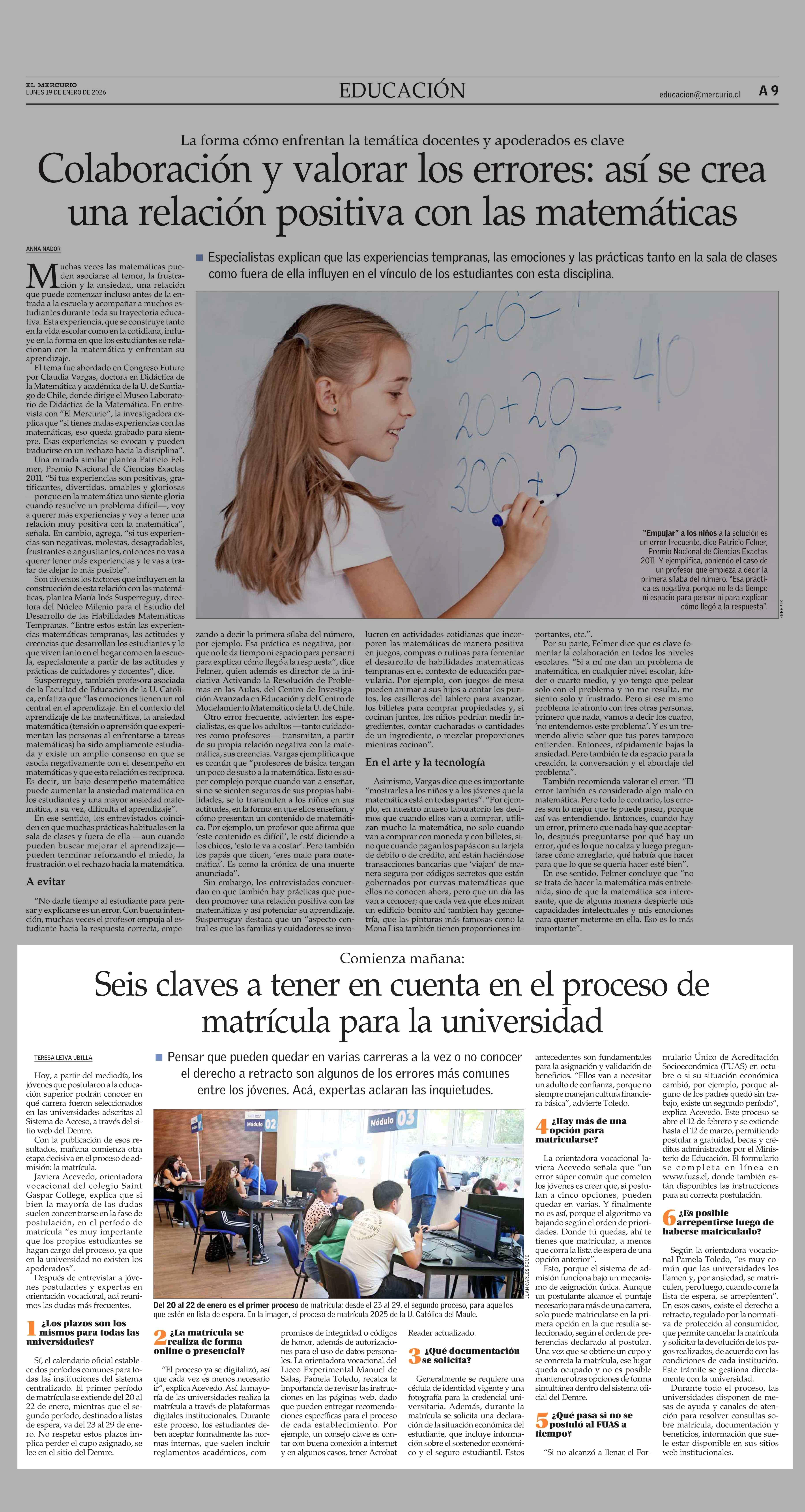 Seis claves a tener en cuenta en el proceso de matrícula para la universidad 19-01-2026 El Mercurio |