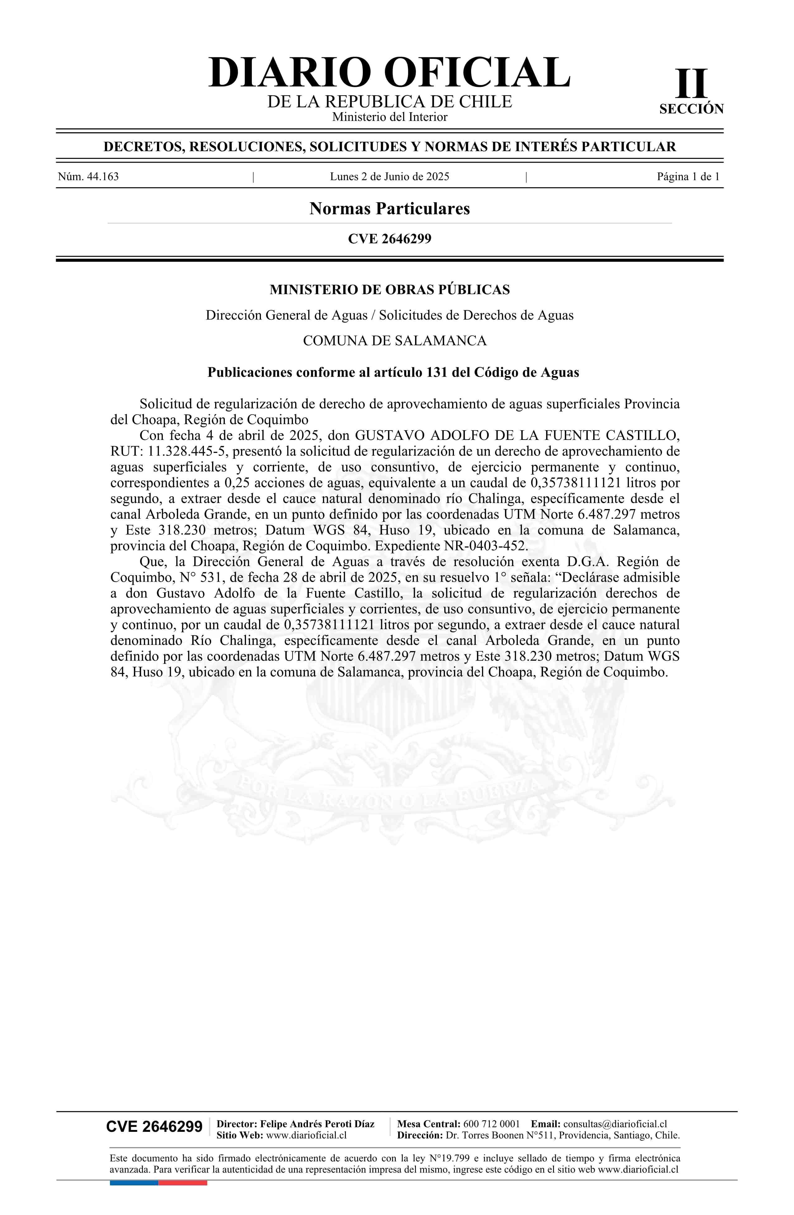 Solicitud De la Fuente Castillo Gustavo Adolfo 02-06-2025 Diario Oficial Edición Electrónica |