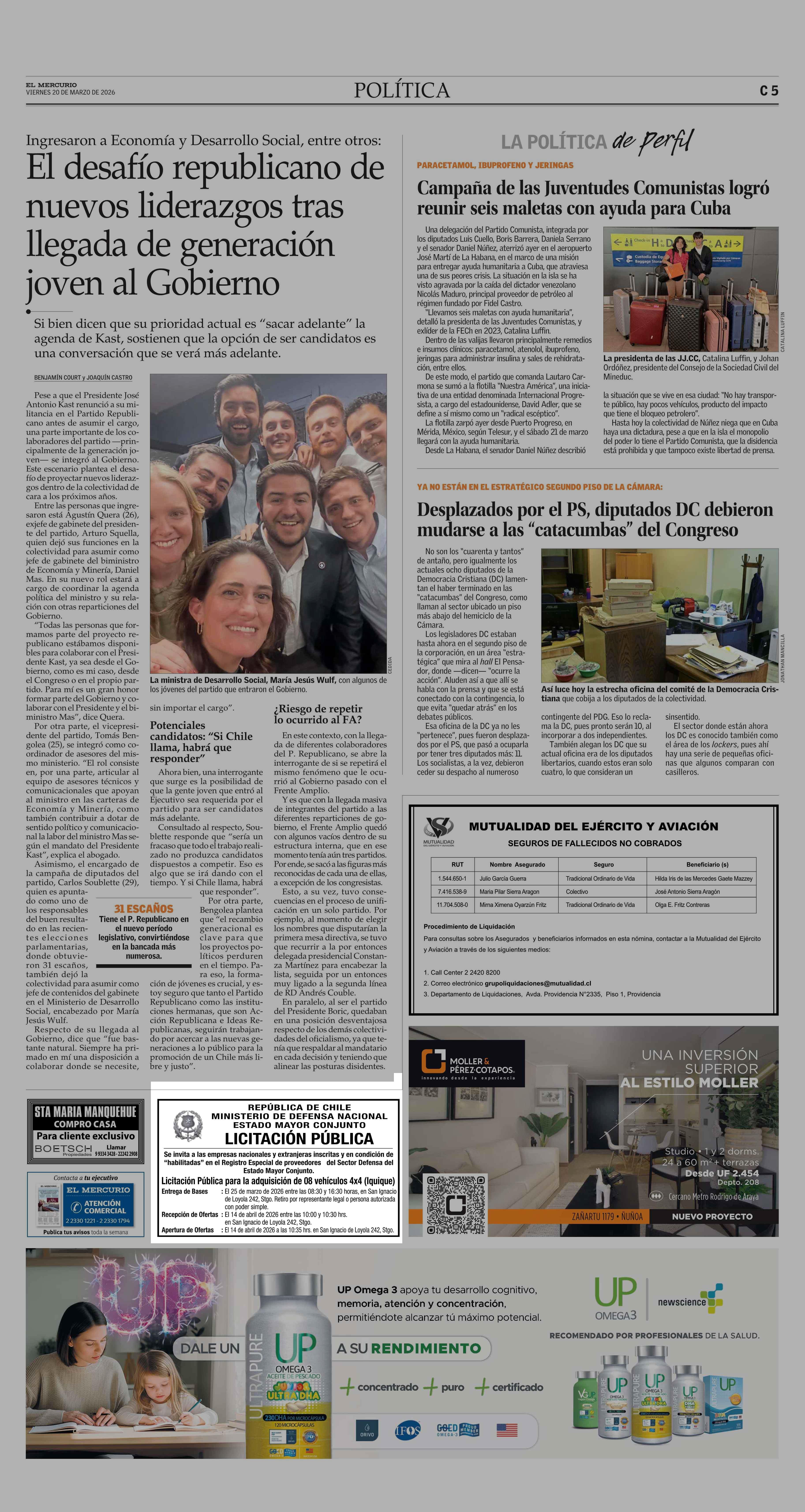 AVISO LICITACIONES: REPÚBLICA DE CHILE MINISTERIO DE DEFENSA NACIONAL ESTADO MAYOR CONJUNTO LICITACIÓN PÚBLICA 20-03-2026 El Mercurio |