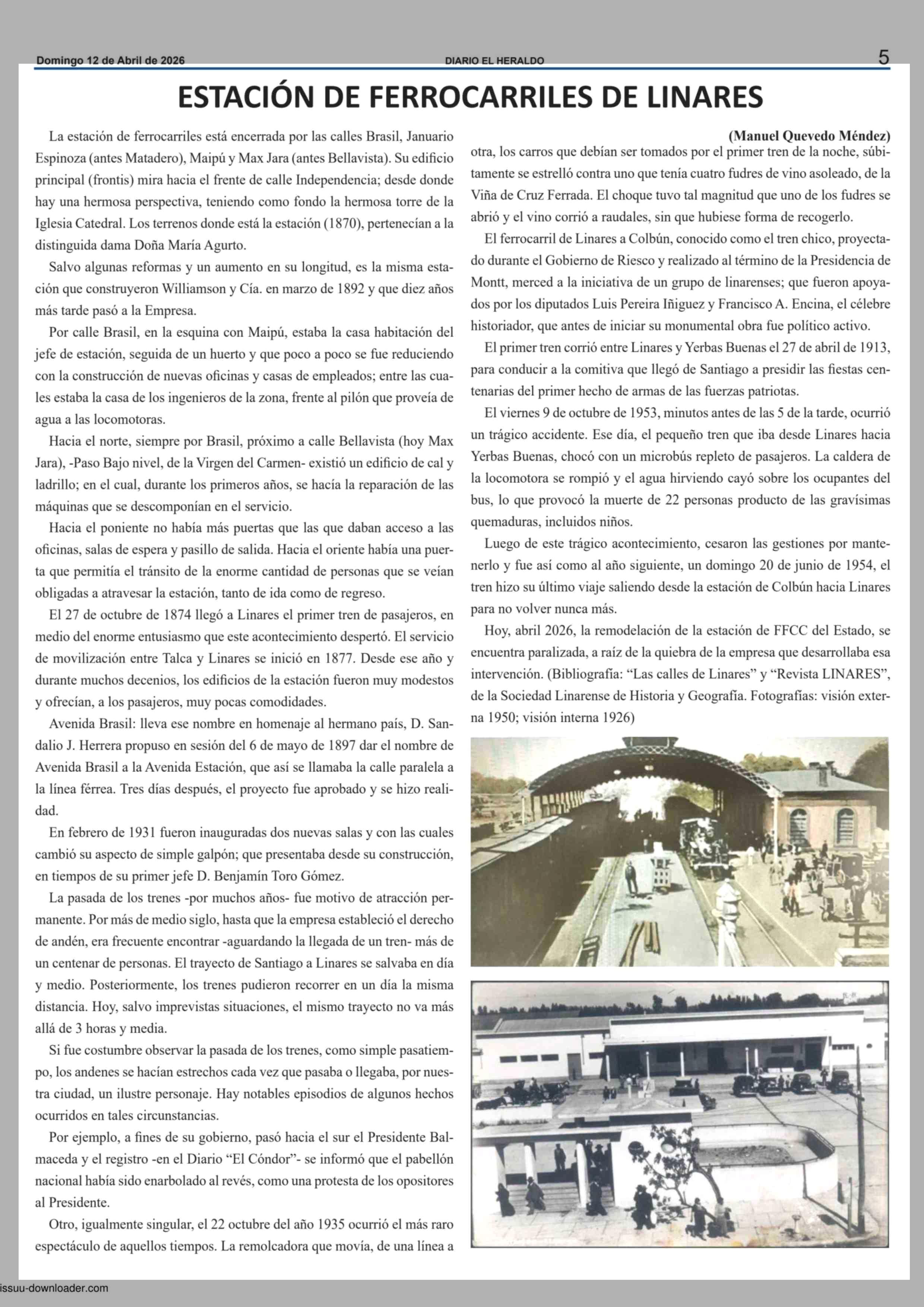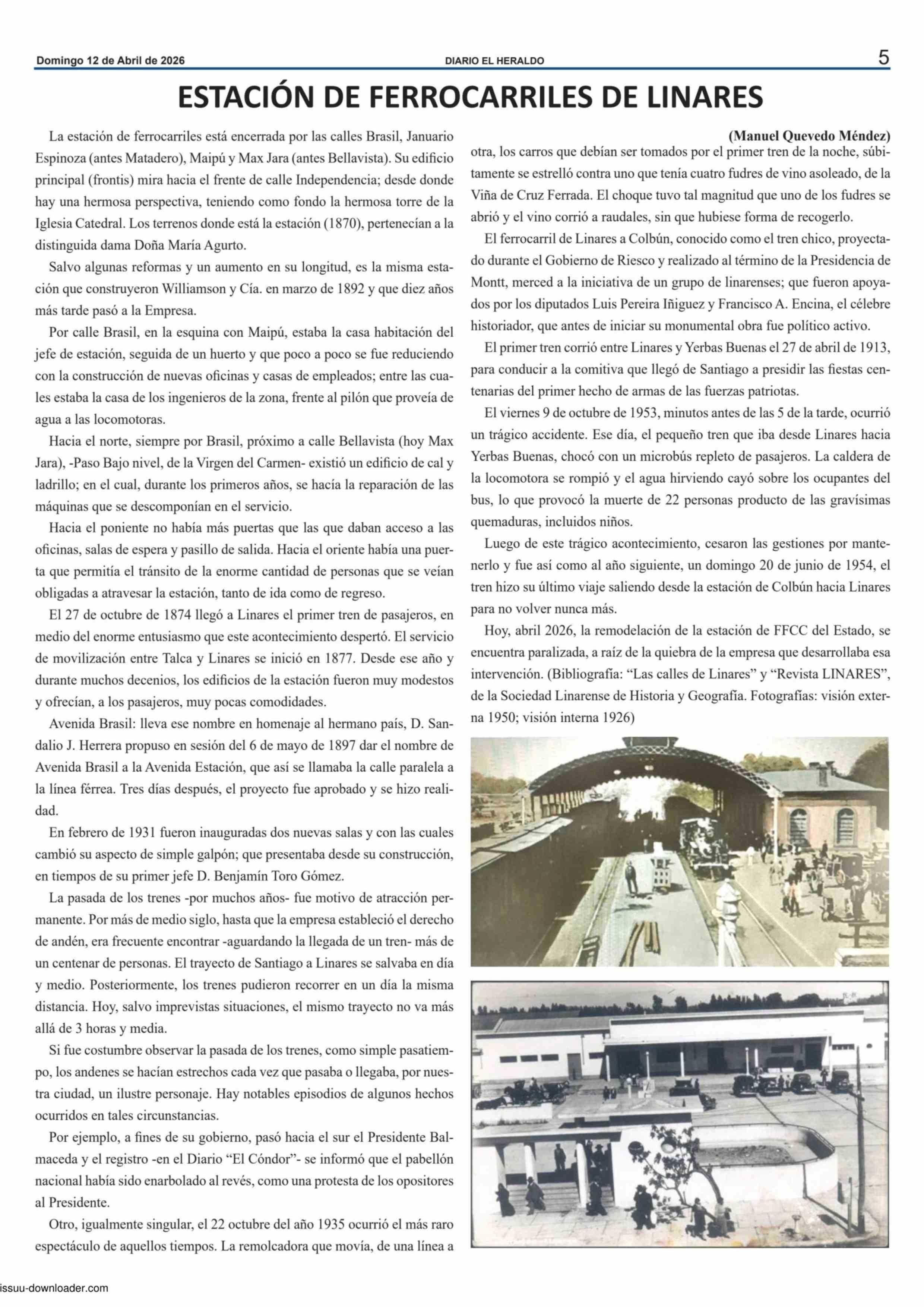 ESTACIÓN DE FERROCARRILES DE LINARES 12-04-2026 El Heraldo |