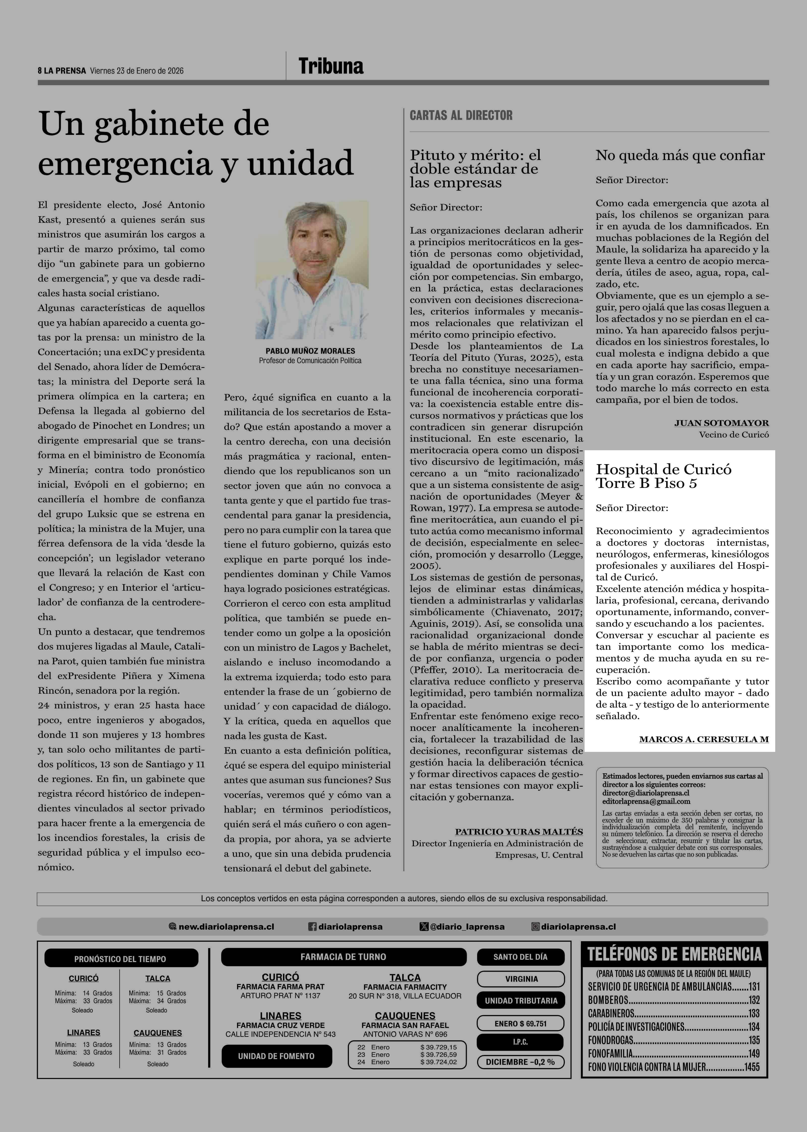 23-01-2026 La Prensa de Curicó