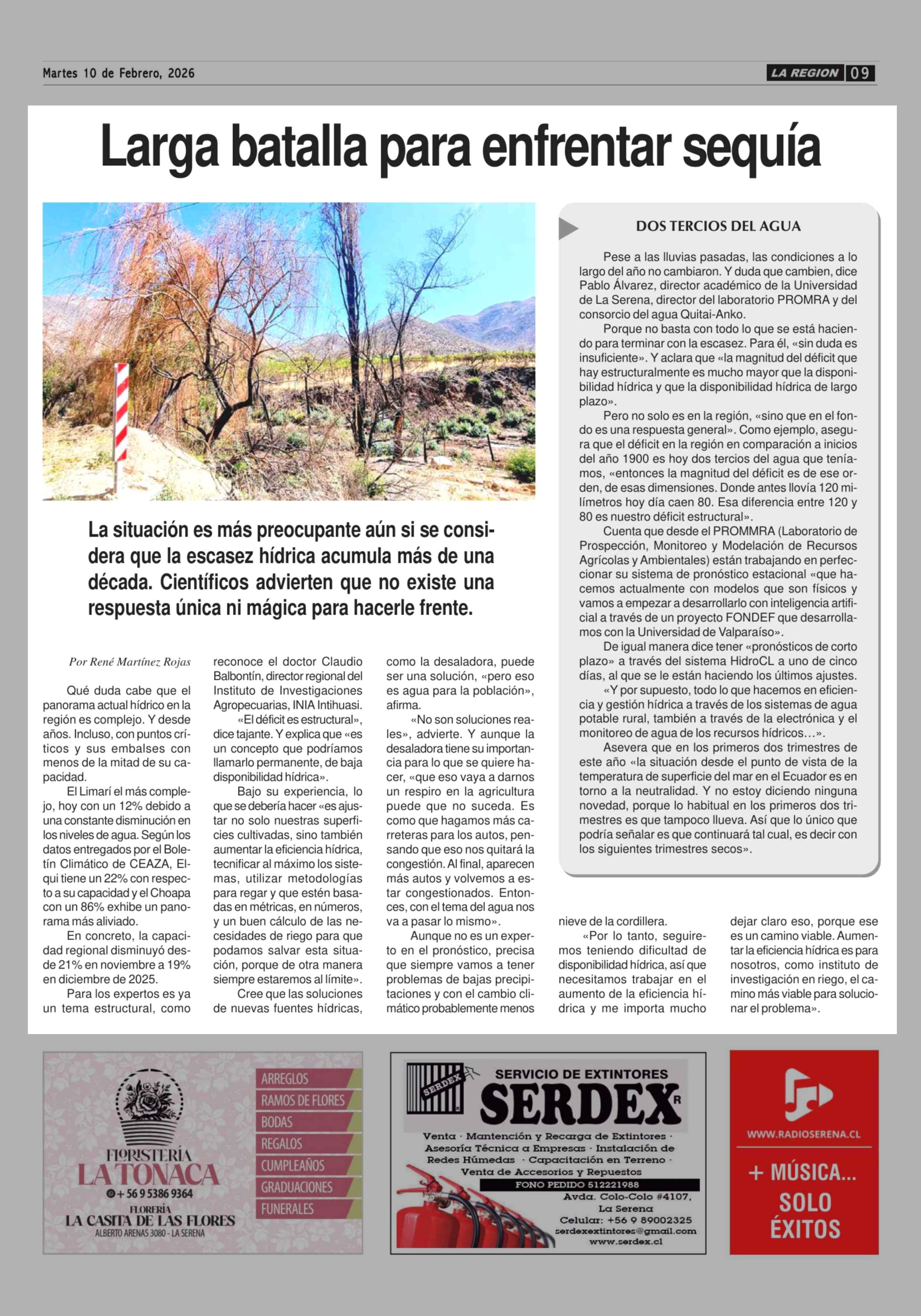 Larga batalla para enfrentar sequía 10-02-2026 Diario la Región |