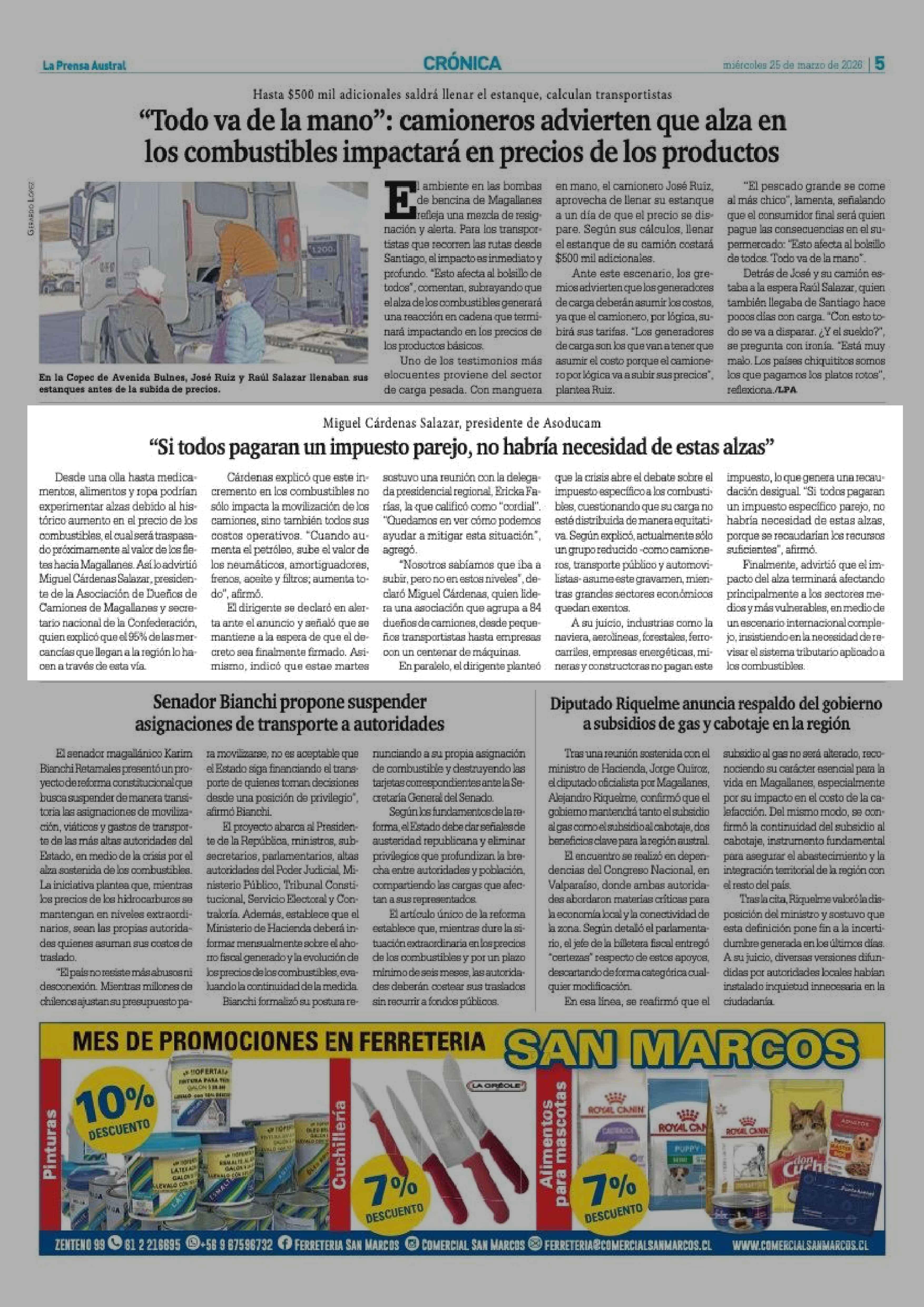 "Si todos pagaran un impuesto parejo, no habría necesidad de estas alzas" 25-03-2026 La Prensa Austral |