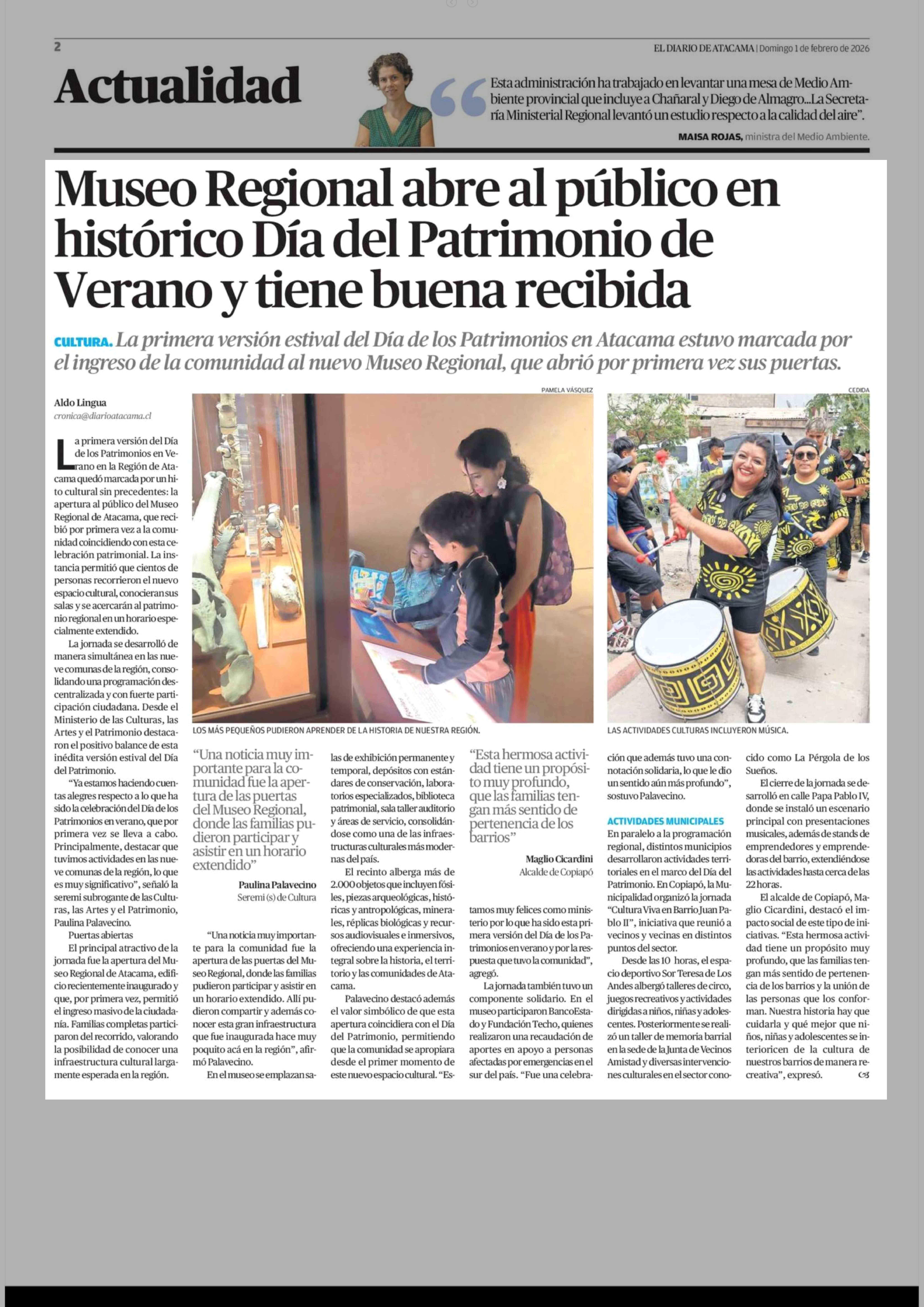 Museo Regional abre al público en histórico Día del Patrimonio de Verano y tiene buena recibida 01-02-2026 El Diario de Atacama |