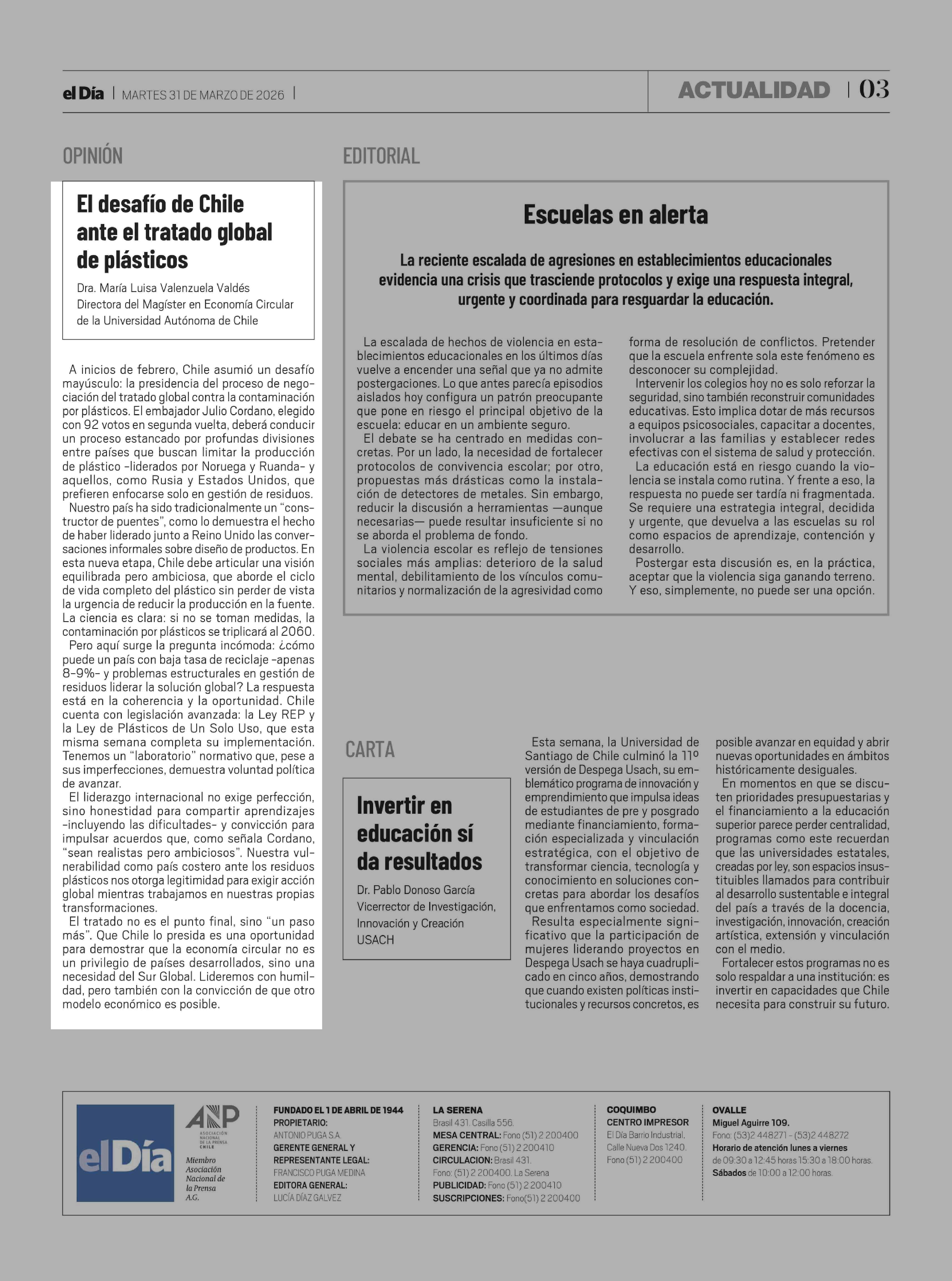 | Fecha: | 31-03-2026 | Sector: | Columnas de Opinión | Región: | Región de Coquimbo |
