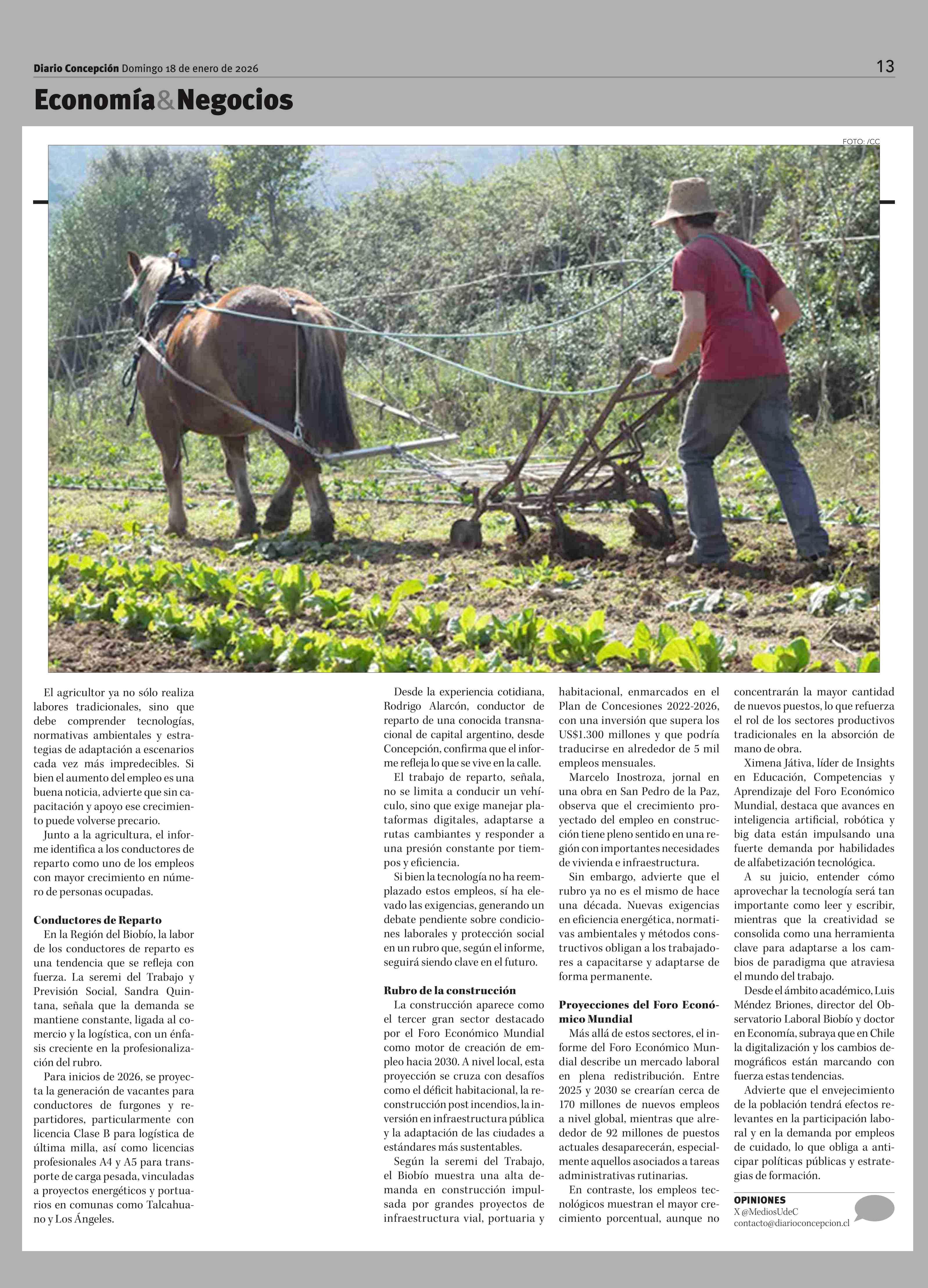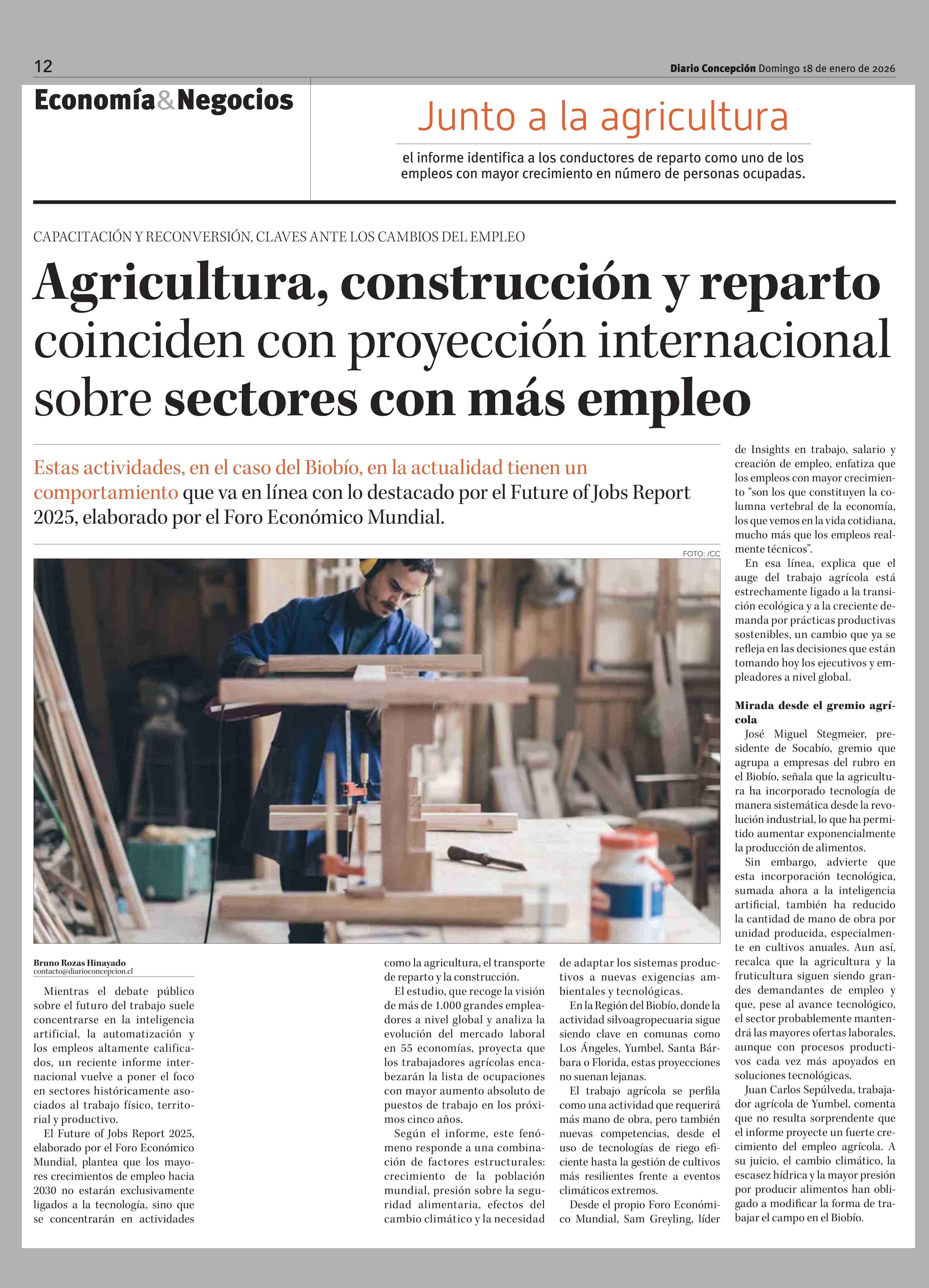 Agricultura, construcción y reparto coinciden con proyección internacional sobre sectores con más empleo 18-01-2026 Diario Concepción |