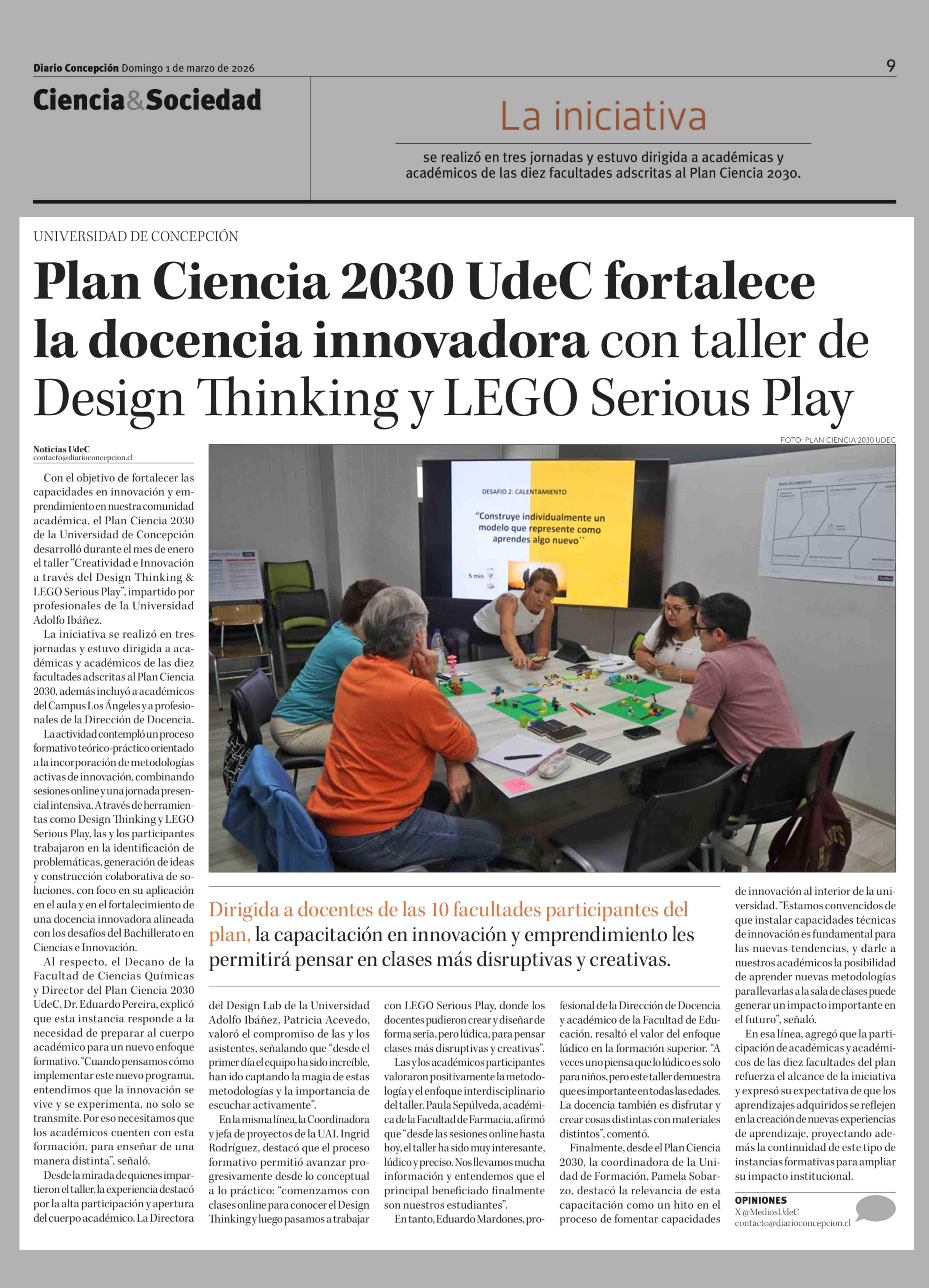 Título: Plan Ciencia 2030 UdeC fortalece la docencia innovadora con taller de Design Thinking y LEGO Serious Play