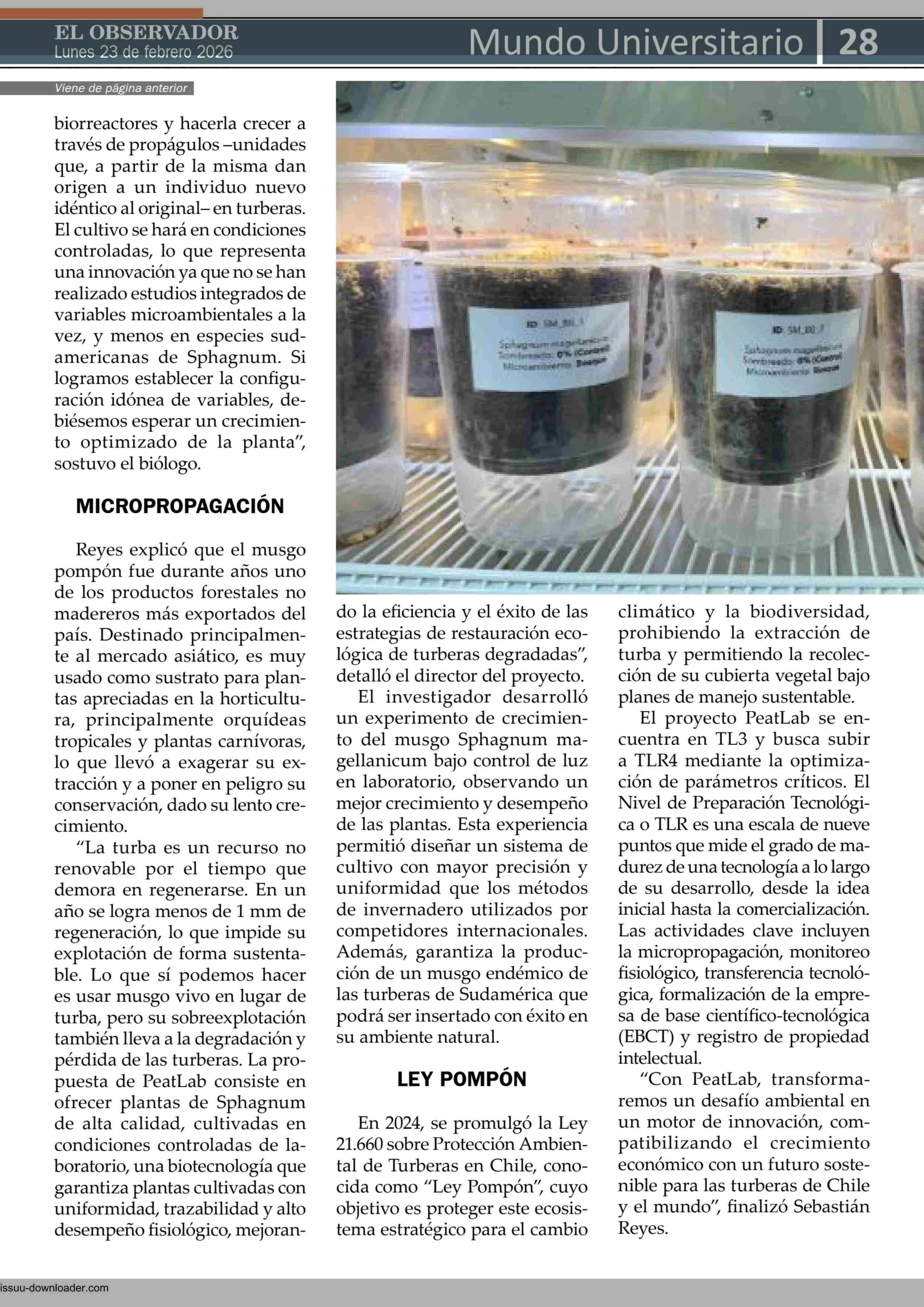 Proponen solución biotecnológica para restaurar turberas en Chile 23-02-2026 El Observador Vespertino |