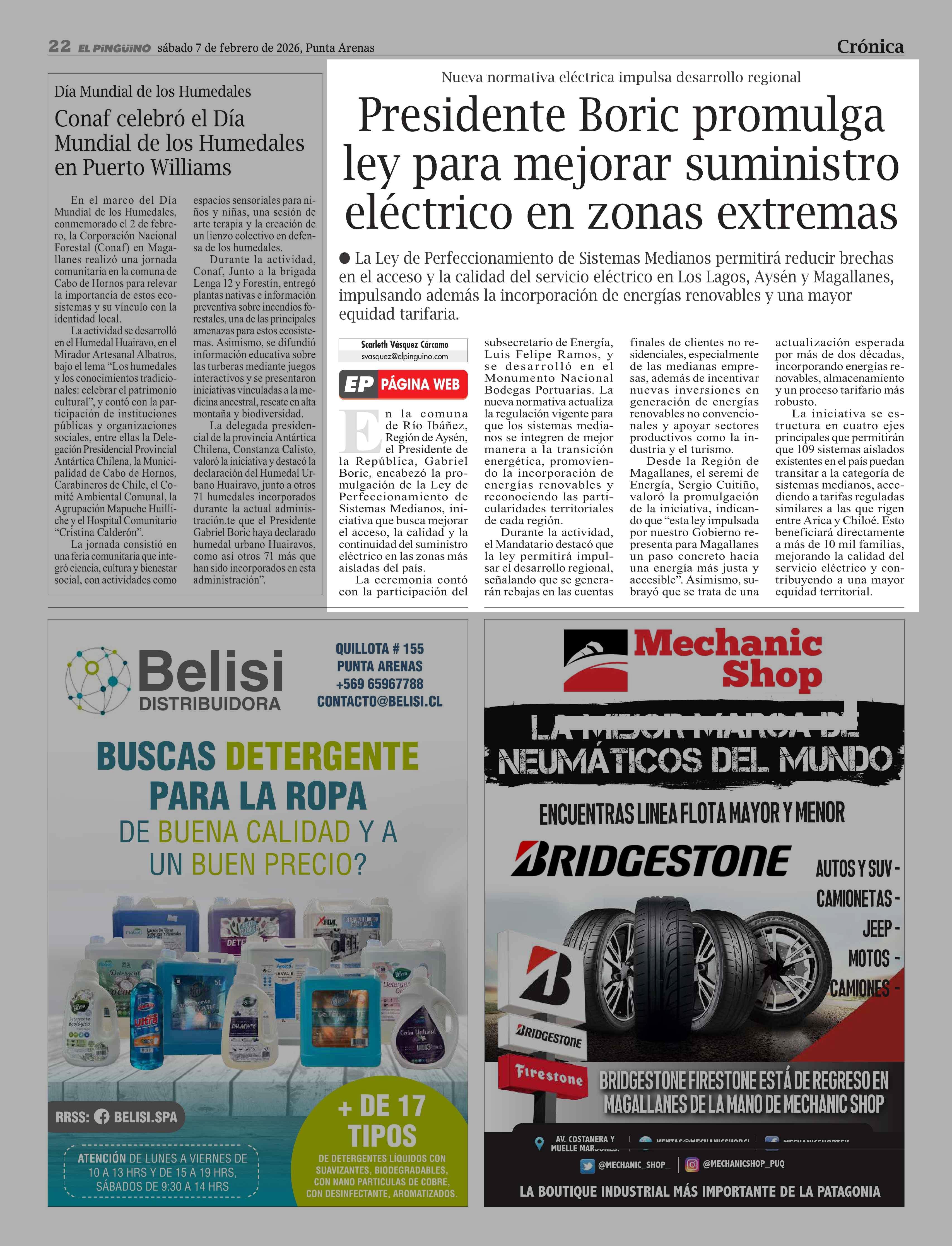 Presidente Boric promulga ley para mejorar suministro eléctrico en zonas extremas 07-02-2026 El Pingüino |