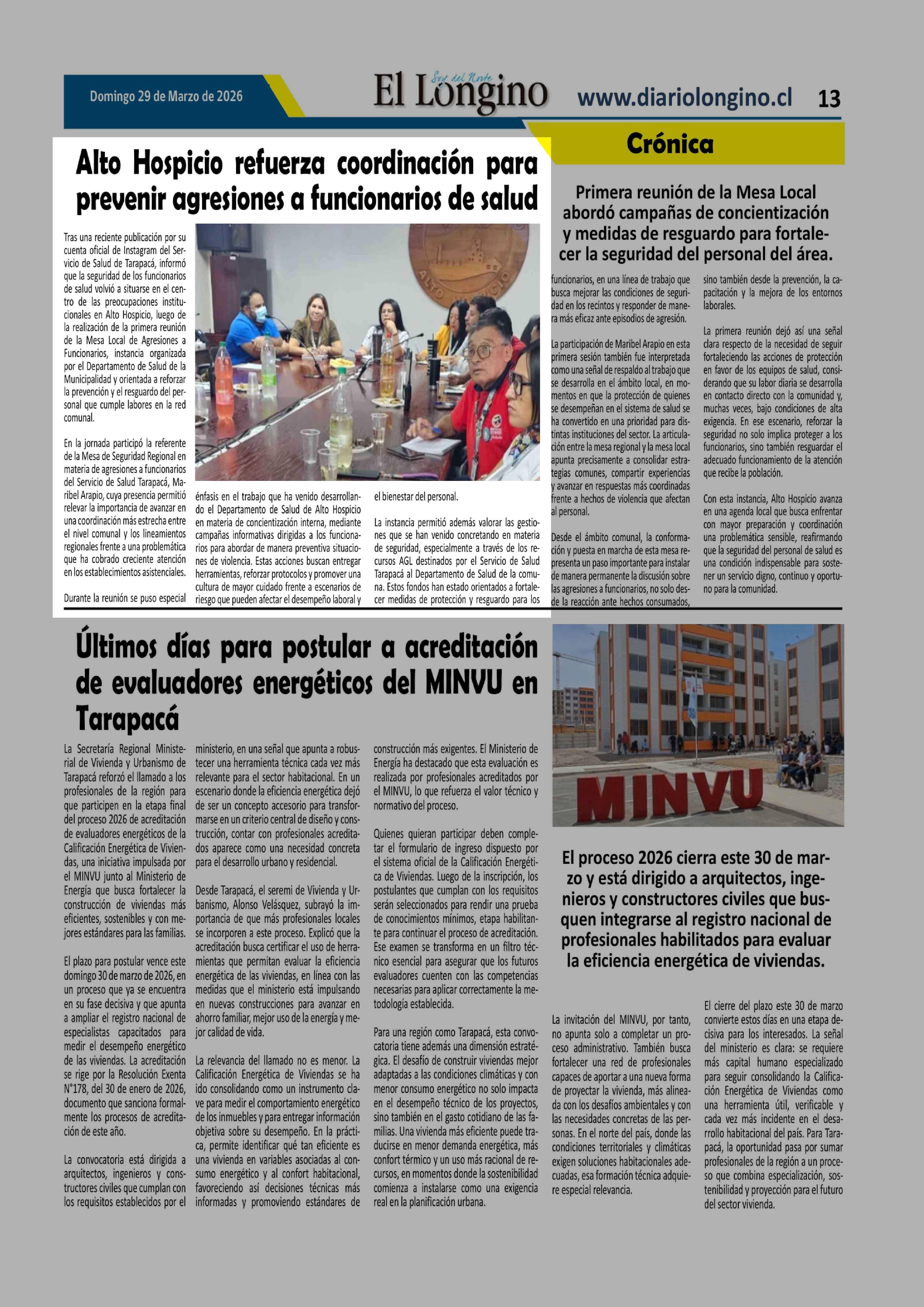 | Fecha: | 29-03-2026 | Sector: | Noticia general | Región: | Región de Tarapacá |